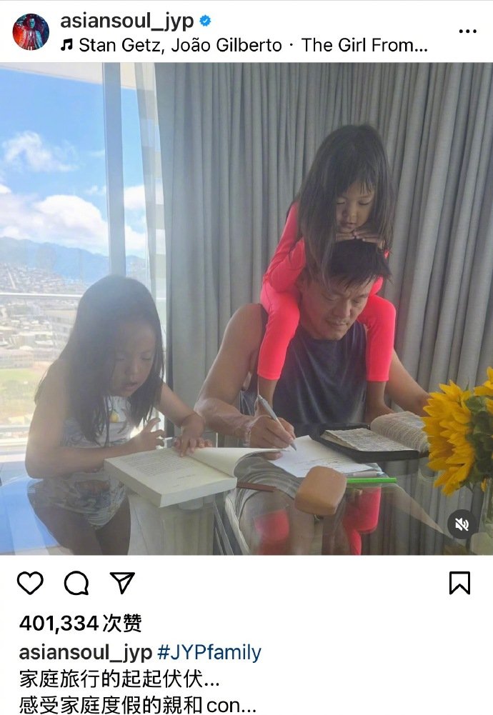 JYP公开与女儿们的合照JYP生了两个性转版的自己JYP分享自己与女儿们的合照