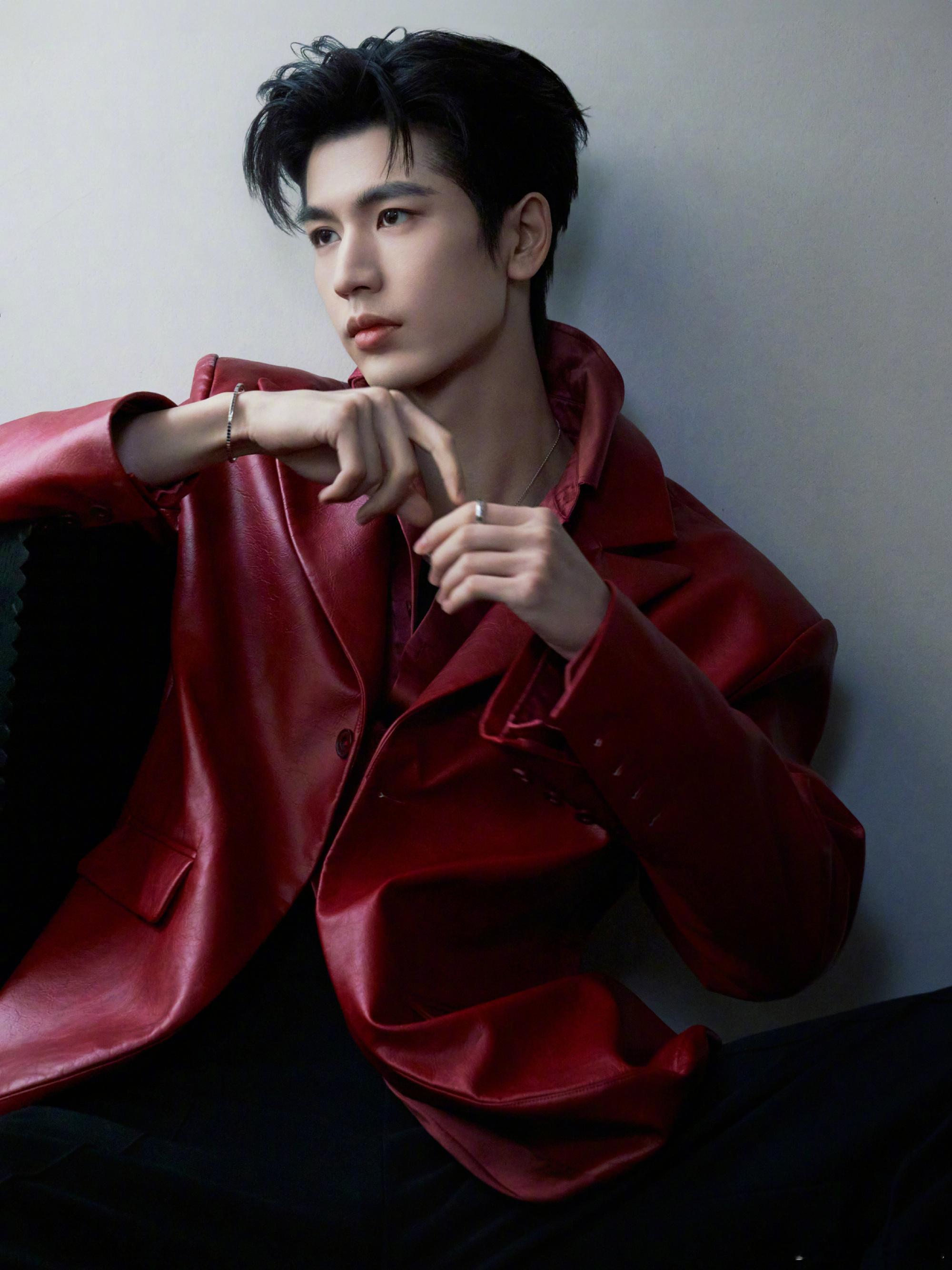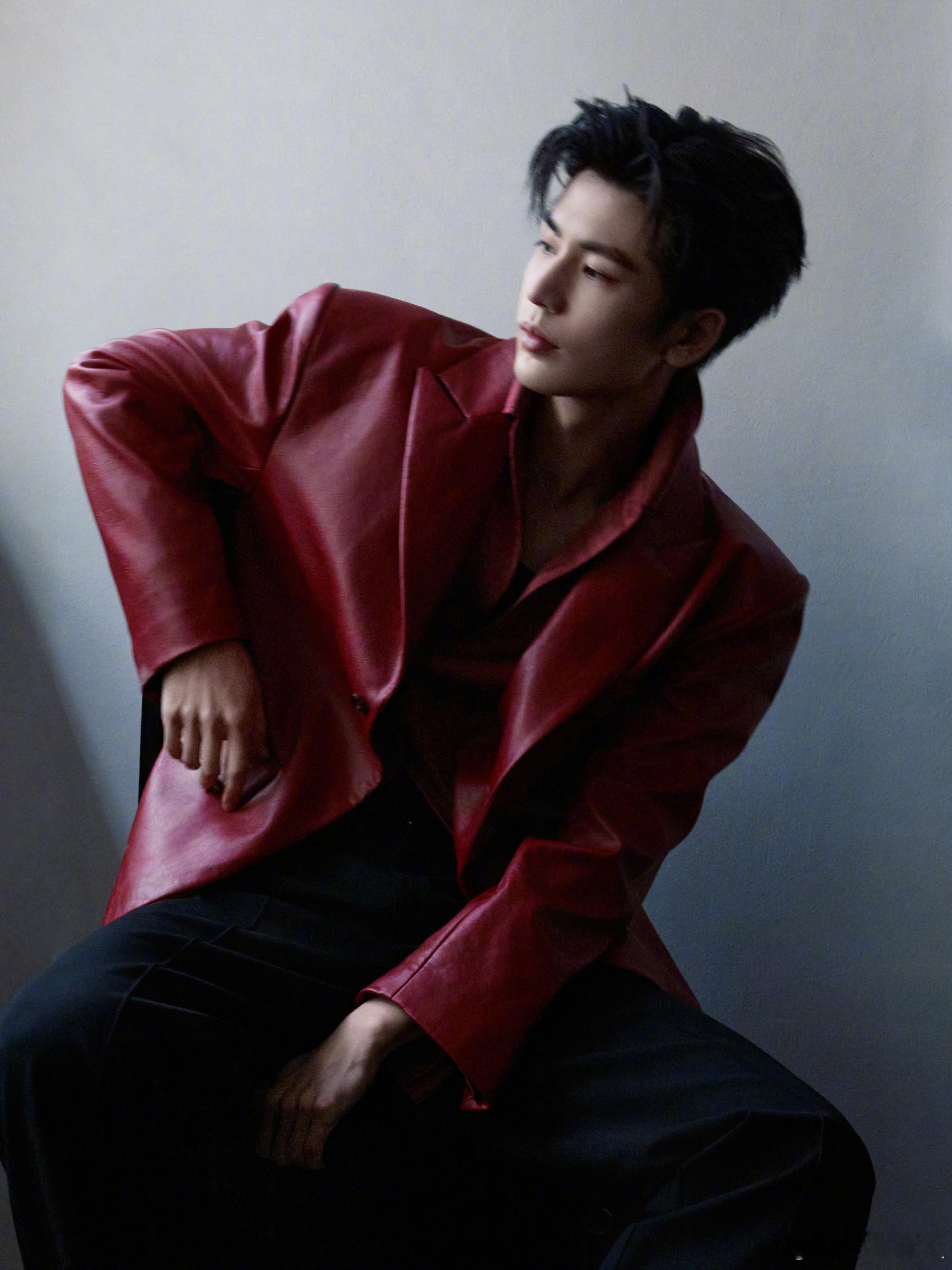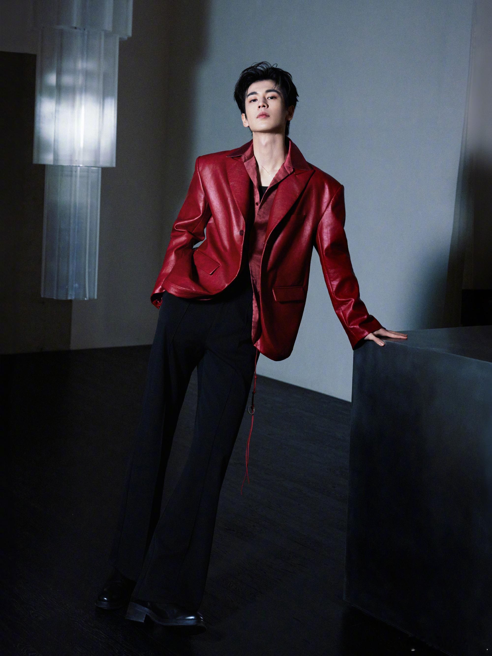 张凌赫怎么有人这么适合红色张凌赫红色皮衣daddy级别这个穿红色皮衣帅的有点