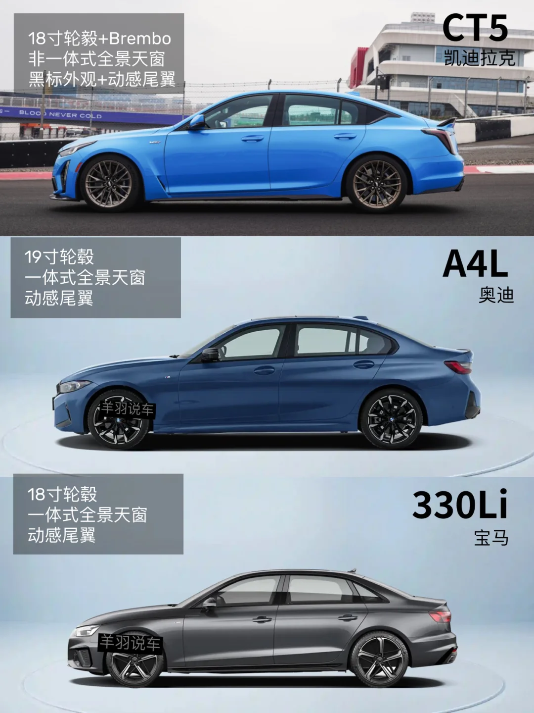 ✅再看设计,CT5黑标战衣+尾翼杀我!Brembo红色卡钳配18寸大脚,停车场里就是一道风景线。A4L臻选动感版设计比较稳重大气,属于耐看型,3系运动耀夜版设计比A4L年轻化,可以跻身潮男行列。