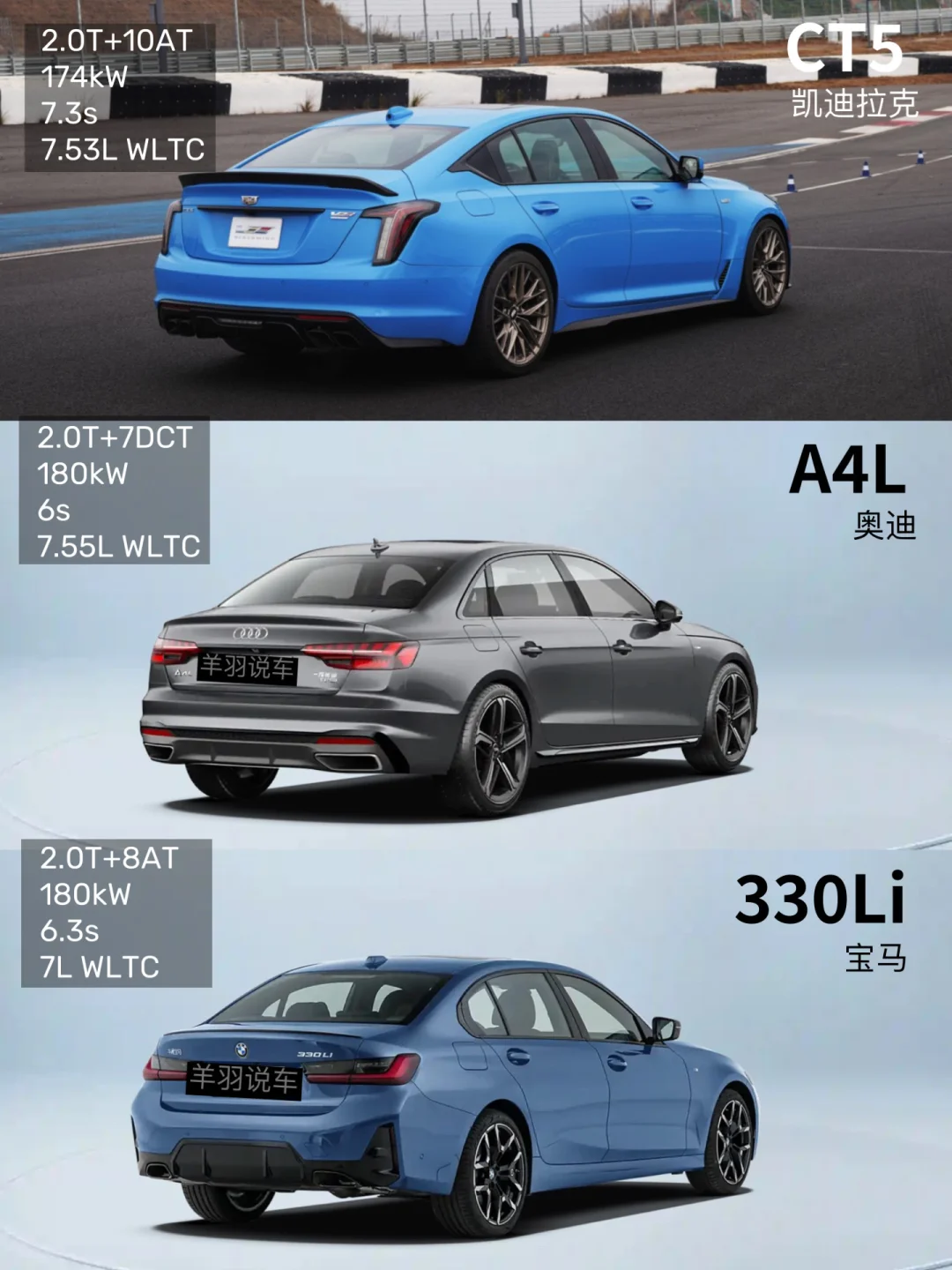 ✅先看动力,CT5赛道性能版搭载2.0T+10AT的动力组合,全系237匹马力,高架超车也就是一脚油门的事!奥迪A4L臻选动感版,它的动力日常开也够,但在爆发感上还是稍逊一筹。宝马3系运动耀夜版,动力也不错,不过在挡位切换的平顺性上,10AT变速箱更丝滑,驾驶体验更好。