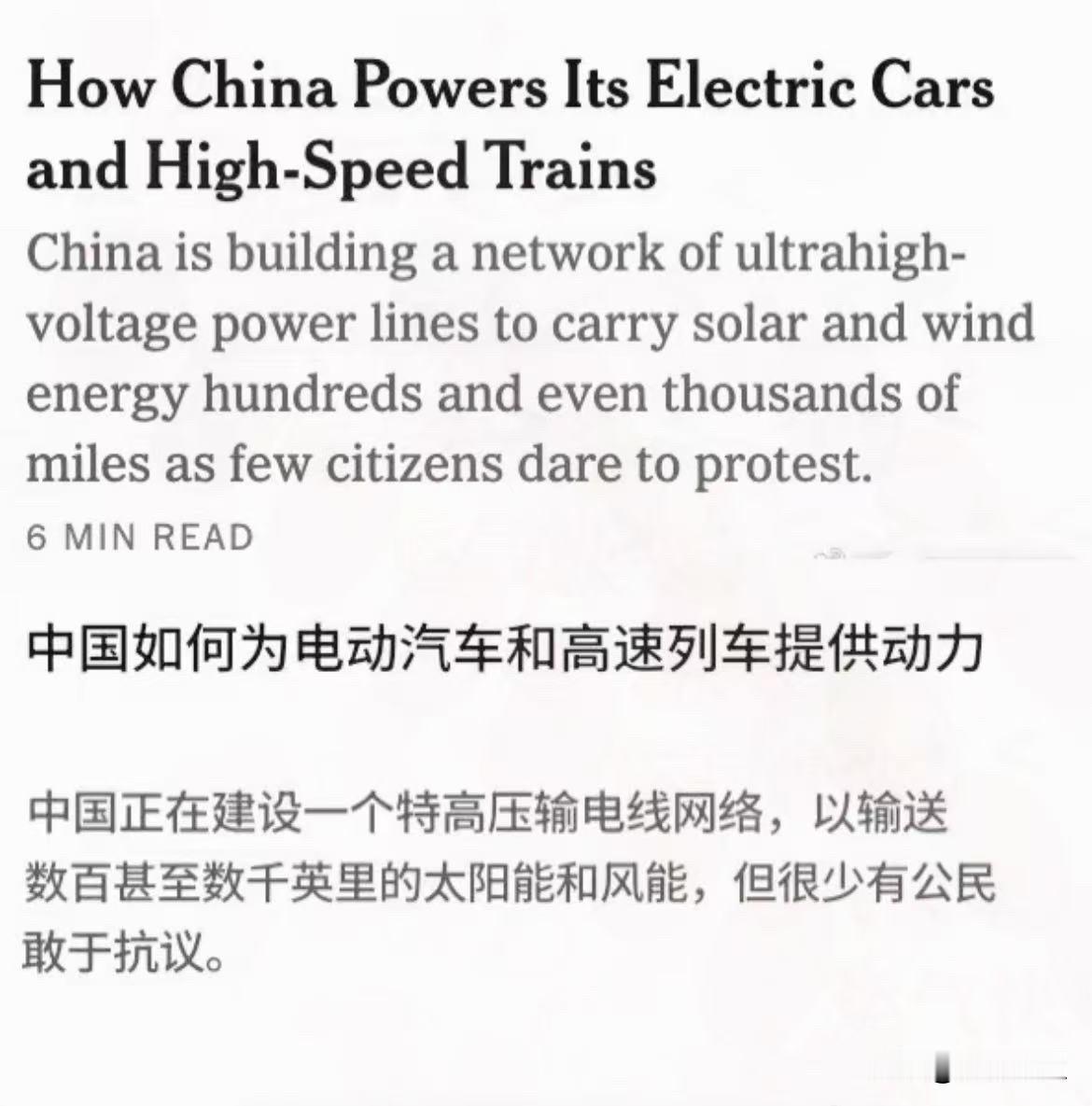 看吧,纽约时报来抹黑咱们? 纽约时报这波操作看不懂! 刷到纽约时报的新报道,越看越觉得不对劲。标题说的是“抗议美国高价电力和支持廉价电力之间的矛盾”,里面却提了句“东方大国发展清洁电力,让人民用廉价电,为什么不抗议?” 明眼人都知道这“东方大国”就是咱国啊!咱国家这些年搞清洁能源多实在,太阳能板、电动车电池产量都是全球靠前的,特高压输电把电送到全国各地,老百姓才能用上便宜电。 还有电动车补贴,实实在在落到手里,既省钱又环保,这些都是看得见的好处。 结果纽约时报对这些全装没看见,反倒拿“为啥不抗议”说事儿,这不就是故意转移话题嘛? 美国自己电力价格高,老百姓有意见,不想着解决自家问题,倒来扯中国,这算哪门子事? 其实真该好好看看中国是怎么把民生和环保结合起来的,多学学好经验,比在这儿乱找角度抹黑有用多了。 大家觉得纽约时报这逻辑站得住脚吗?有不同想法的,都来评论区聊聊~