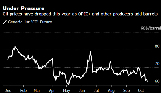 自上月底以来,由于石油输出国组织(OPEC)及其盟友,还有该组织之外的产油国,在市场普遍认为面临供过于求之际大量生产,布伦特原油已下跌11%。交易员用来衡量市场强弱的远期曲线也在勾勒出美国原油市场明年的偏空图景。