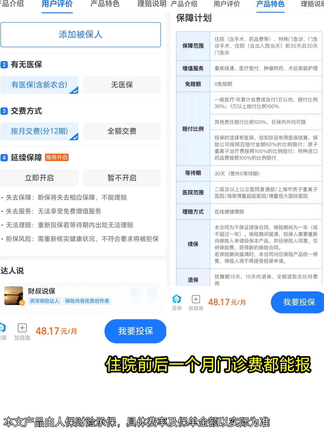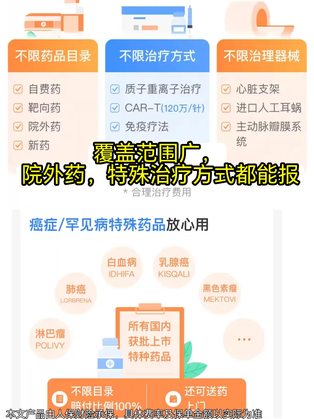 有大病经历的朋友都知道,很多特效药非常昂贵,比如120w一针的癌症特药car-t,治疗用的器械,像心脏支架,人工耳蜗这些医保无法覆盖的,【好医保·住院医疗(0免赔)】都能报销。保额也非常充足一般医疗300万,重疾和质子重离子共享600万,性价比非常高了!大病需求基本都能覆盖了。