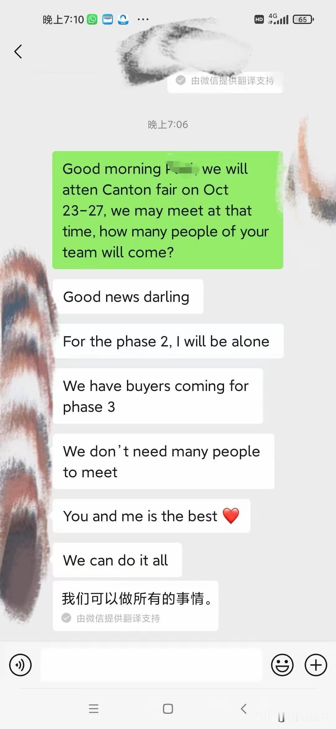 广交会又来了。这不,刷到某女业务员哭苦恼求助的微信截图-说老外客户居心叵测,单独约她见面怕有什么意外。 其实还好啊,这表达虽然有点擦边试探的嫌疑,整体来说也不算太过分。do it all 可以理解为两个当事人就能搞定所有工作,没毛病啊! 的确是有点擦边试探的嫌疑,这位同仁适当谨慎也是应该的。这种情况完全没问题,大大方方约定见面就行了-最好是展会现场! 如果私下约饭,也没问题。带个男同事作陪就OK了。只要你不主动迎合,只要你保持适度距离,老外他绝对不敢硬干什么出格的事! 相对来说,外贸客户比国内那些乱七八糟的干净多了!世界广交会 广交会资质 广交会pin 香港广交会 广交会新规 广交会骗局 广交会兼职