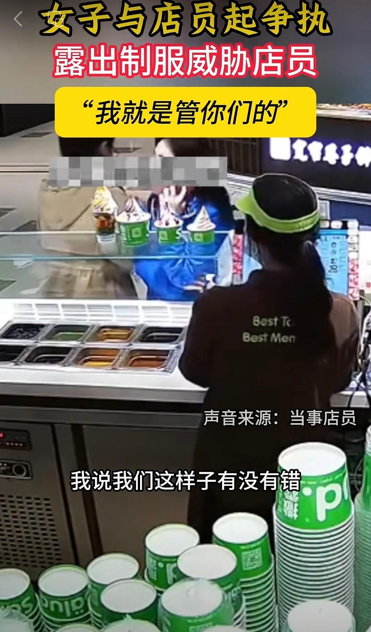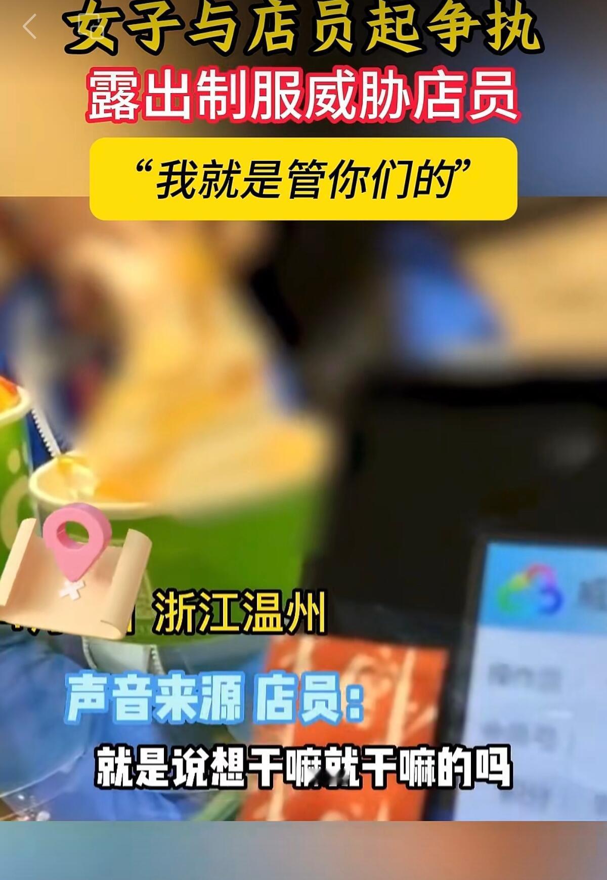 这事儿真是让人看得来气。温州一家饮品店里,一位女顾客因为退会员卡的事情和店员吵起来,结果她居然拉开外套,露出里面的制服,想用这身衣服来吓唬人。 当时这女的和同伴来买饮料,先是嫌做得慢,其实旁边男顾客都主动让她先取了。后来她又说草莓酱不是自己想要的样子。等吃完饭回来退会员卡,店员解释说需要走公司流程,她立马就炸了,直接甩出一句“我就是专门管你们的”,然后亮出制服,那眼神明摆着是想用身份压人。店员小声问她哪个单位的,她也不回答,骂骂咧咧就走了。店员后来委屈地说:吵架也就算了,拿制服吓人太欺负人了。 视频传到网上后,网友全在吐槽:“这官威也太大了点。”就算对服务不满意,好好说话不行吗?非要拿身份压人?直到当地市监局发了通报,大家才知道她还真是单位里的人,现在已经被批评教育,还要进一步处理。 其实大家反感的从来不是消费纠纷本身,而是这种“拿身份压人”的做派。制服代表的是为人民服务的责任,不是让你拿来耍威风的特权。一句“我管你们的”,听着就刺耳——公职人员是服务群众的,不是来管老百姓的。 这事虽然以当事人被批评告一段落,但提醒很实在:不管穿什么衣服、在什么岗位,都不能把公权力当成个人耍威风的工具。只有守住“尊重他人、认真办事”的底线,才能赢得大家的信任。