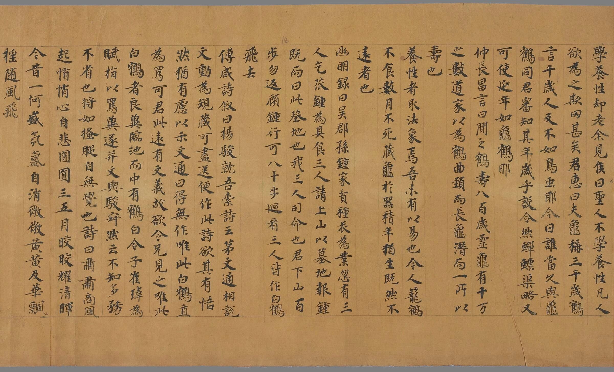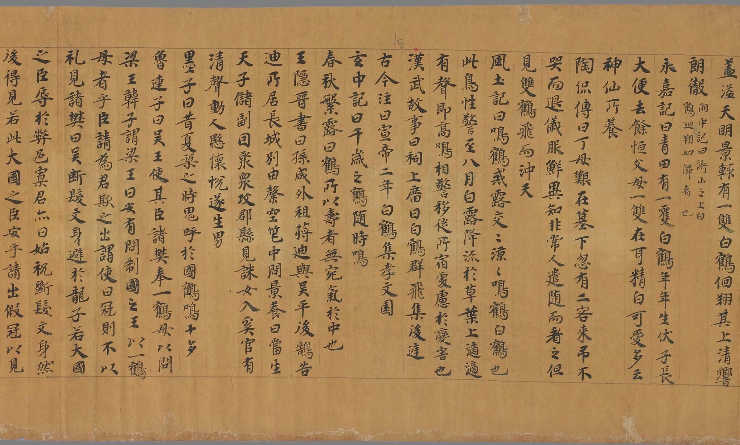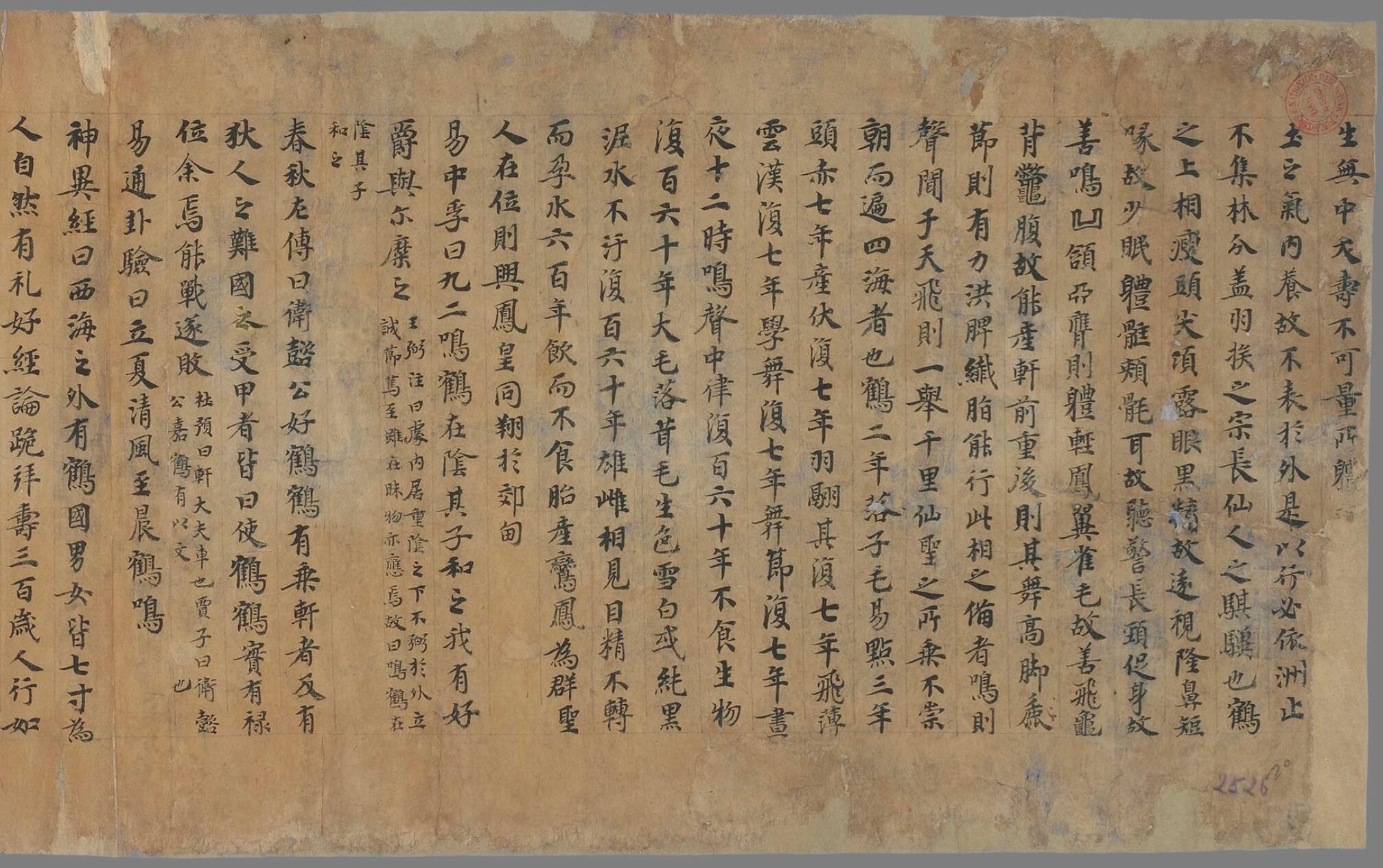 敦煌遗书编号P.2526,唐代手抄文书,是北齐编纂的《修文殿御览》还是南朝刘孝标所编《类苑》尚有争议。所抄书法严谨优美,其中有《庄子》节选。