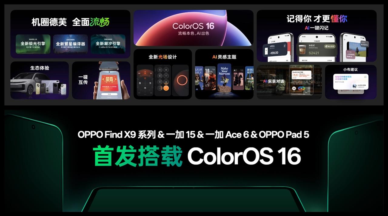 ,大方向上是更AI了,细节方面的优化更多。将会由即将发布的Find X9系列、一加15、一加Ace6、OPPO Pad5首发搭载,下午会开始推送内测申请通过的。 另外也进一步完善了for Pad和Watch的覆盖,同样给到更多的细节特性,会非常好用。