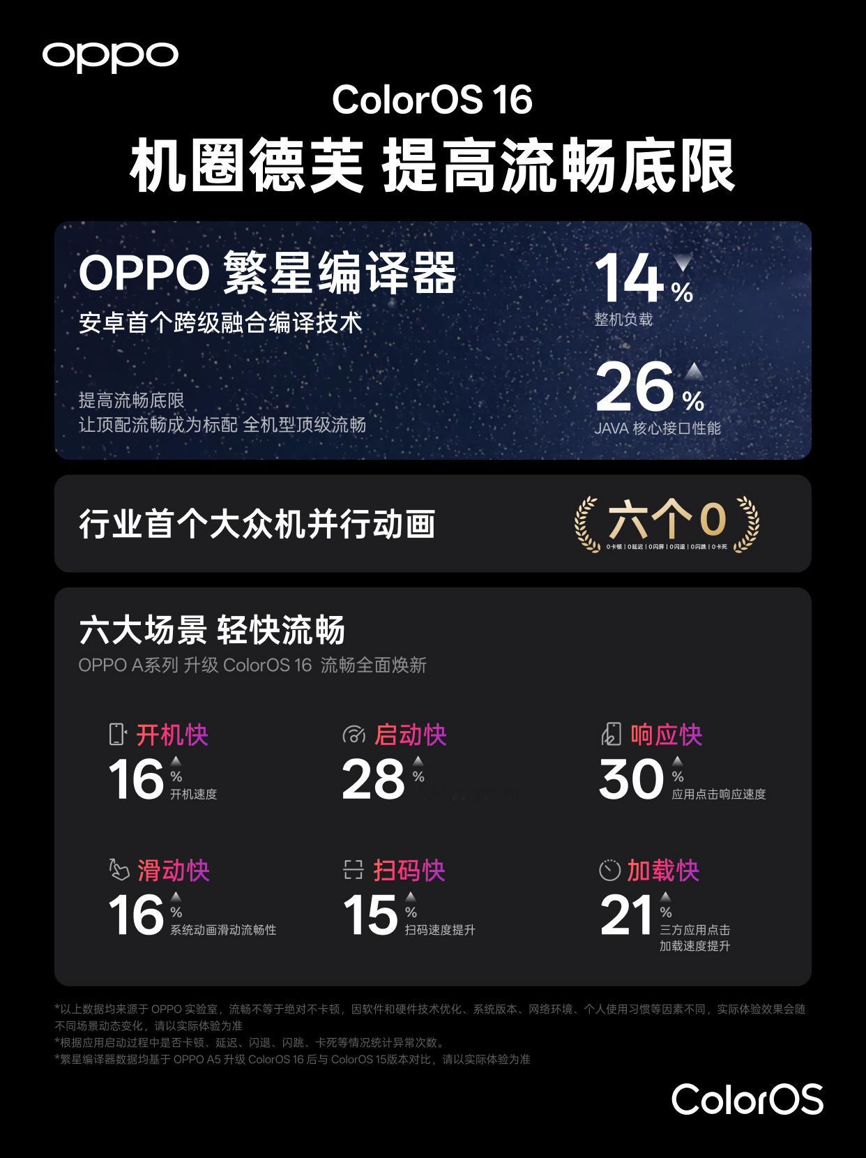 再有就是潮汐引擎的加持,在手机进行游戏+直播等多任务重载场景下,也能够让系统能够稳定流畅。接着是繁星编译器,它则主要是让千元机的系统体验流畅度,也能媲美旗舰。看来OPPO在系统体验这块确实没少下功夫。