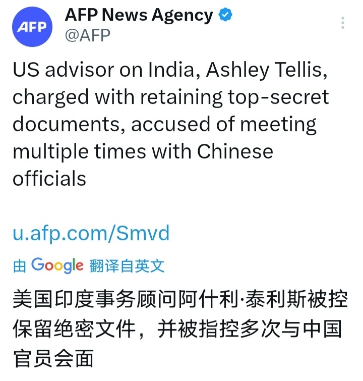 烽火问鼎计划法新社:美国印度事务顾问阿什利·泰利斯被控保留绝密文件,并被指控多次与中国官员会面。