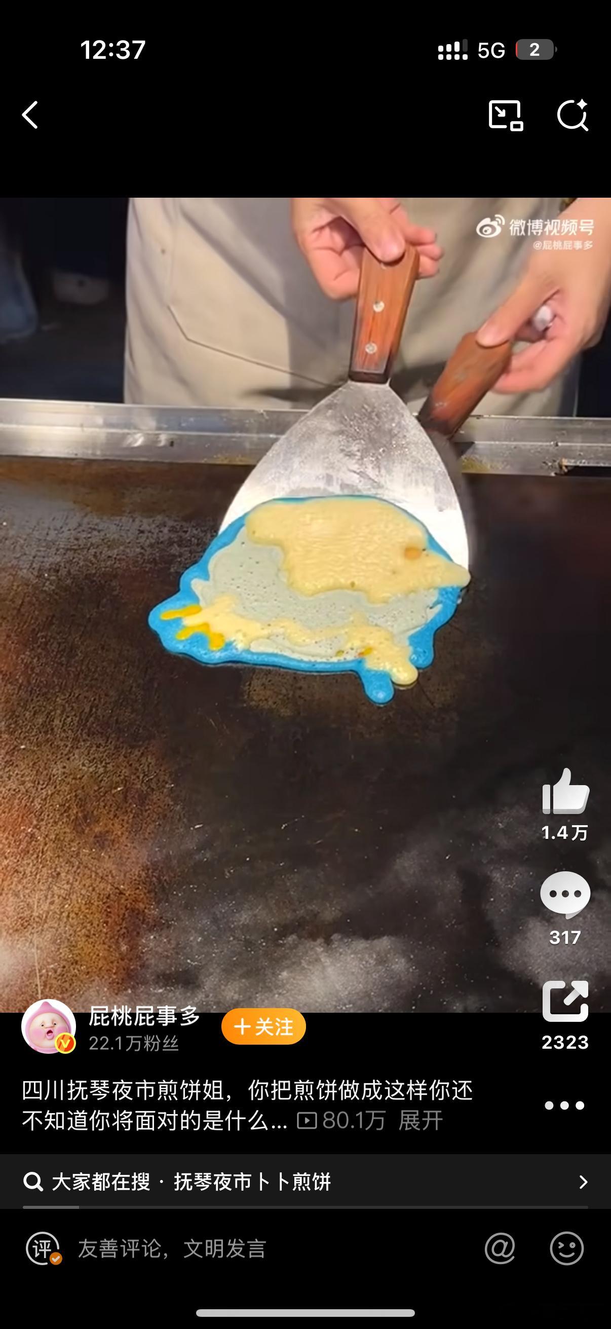四川抚琴夜市火了!煎饼姐弃教从摊,铁板作纸、酱汁为墨,应援煎饼又美又香,打卡队伍排不停。