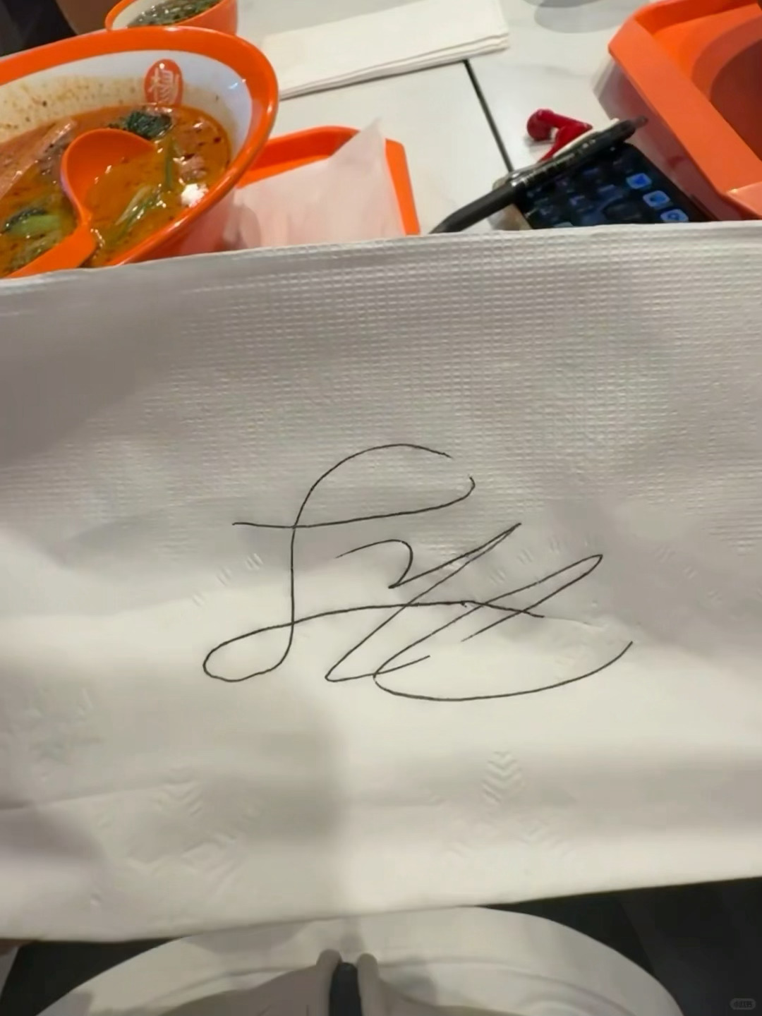 美国吃麻辣烫偶遇徐明浩徐明浩在餐巾纸上签名 ​​​
