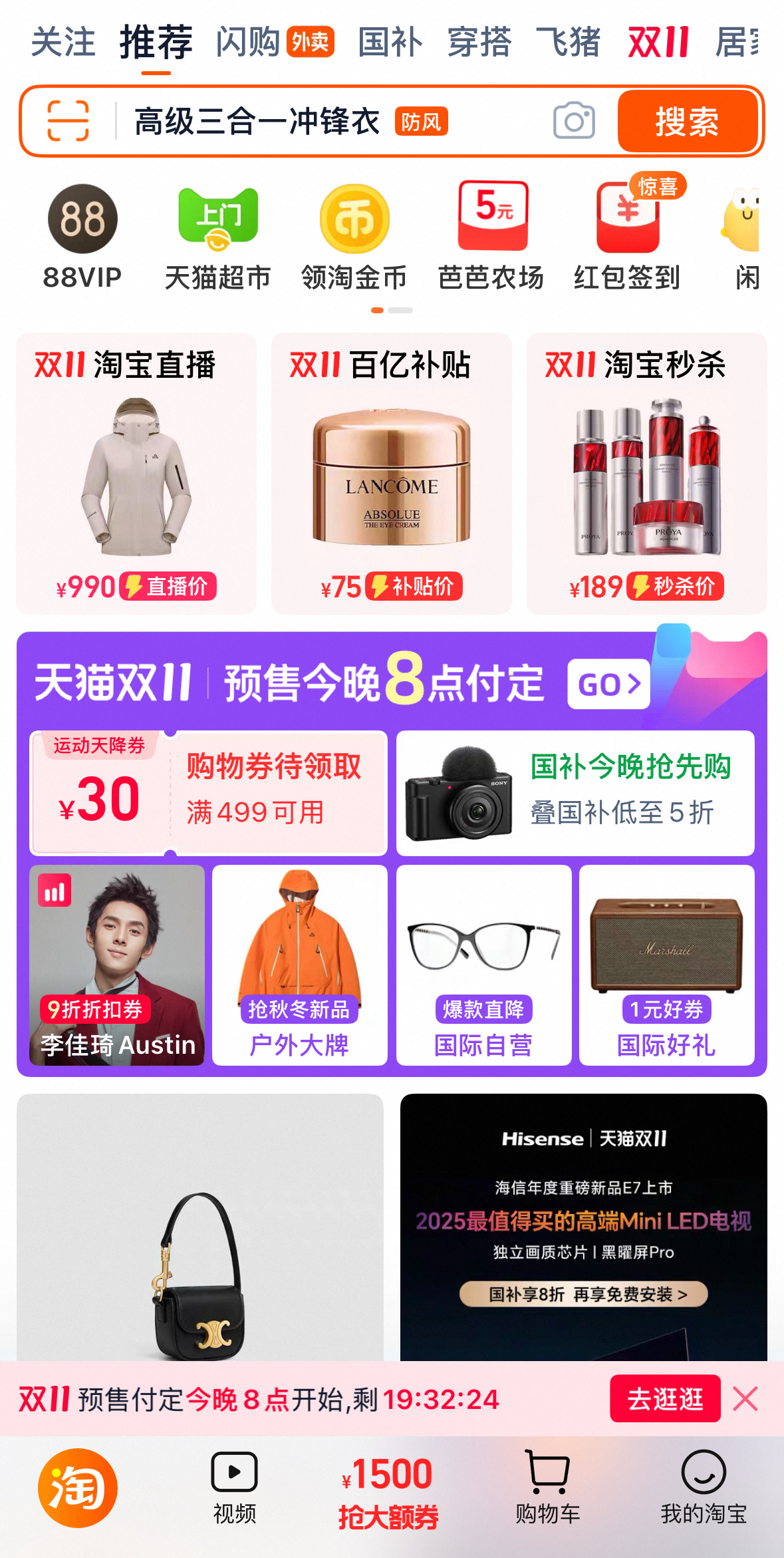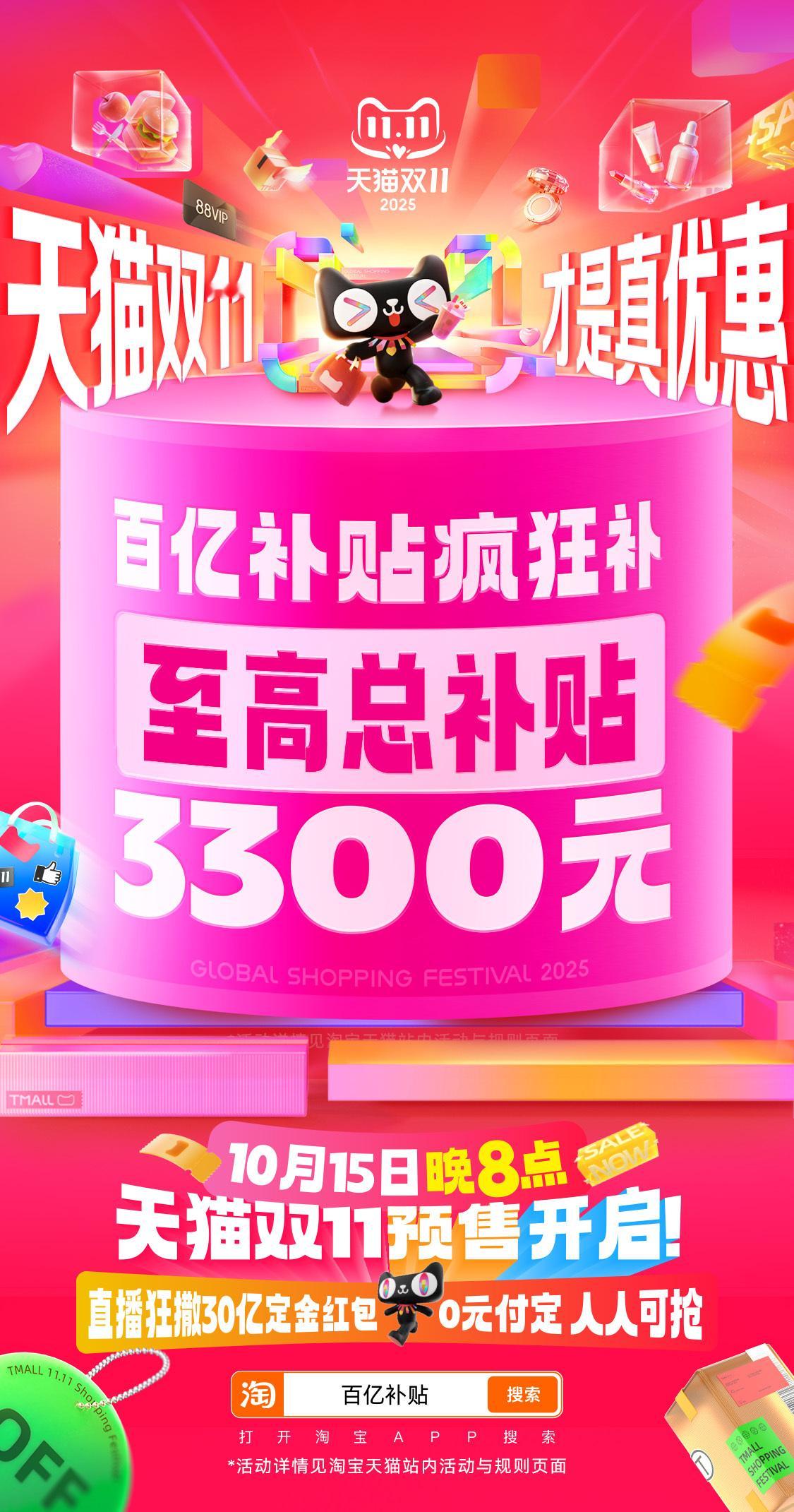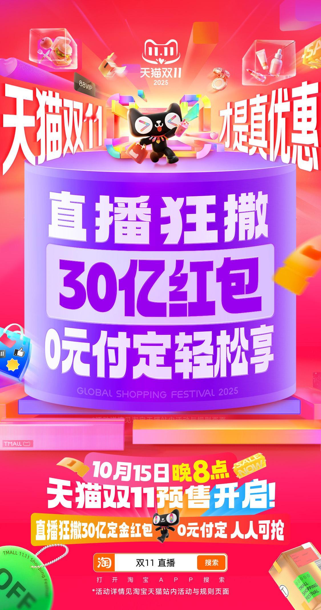 今晚8点天猫双11才是真优惠 10月15号晚8点天猫双11就正式开始了?没错!还发史上最大券包!立减!85折起,叠3250元大额消费券!今晚8点天猫双11预售付定上淘宝搜索【天猫双11预售】,爆款预售抢0元付定,国补现货开卖真5折,价格不用比,天猫双11才是真优惠,准备好接受这波天猫双11冲击了吗!天猫双11才是真优惠