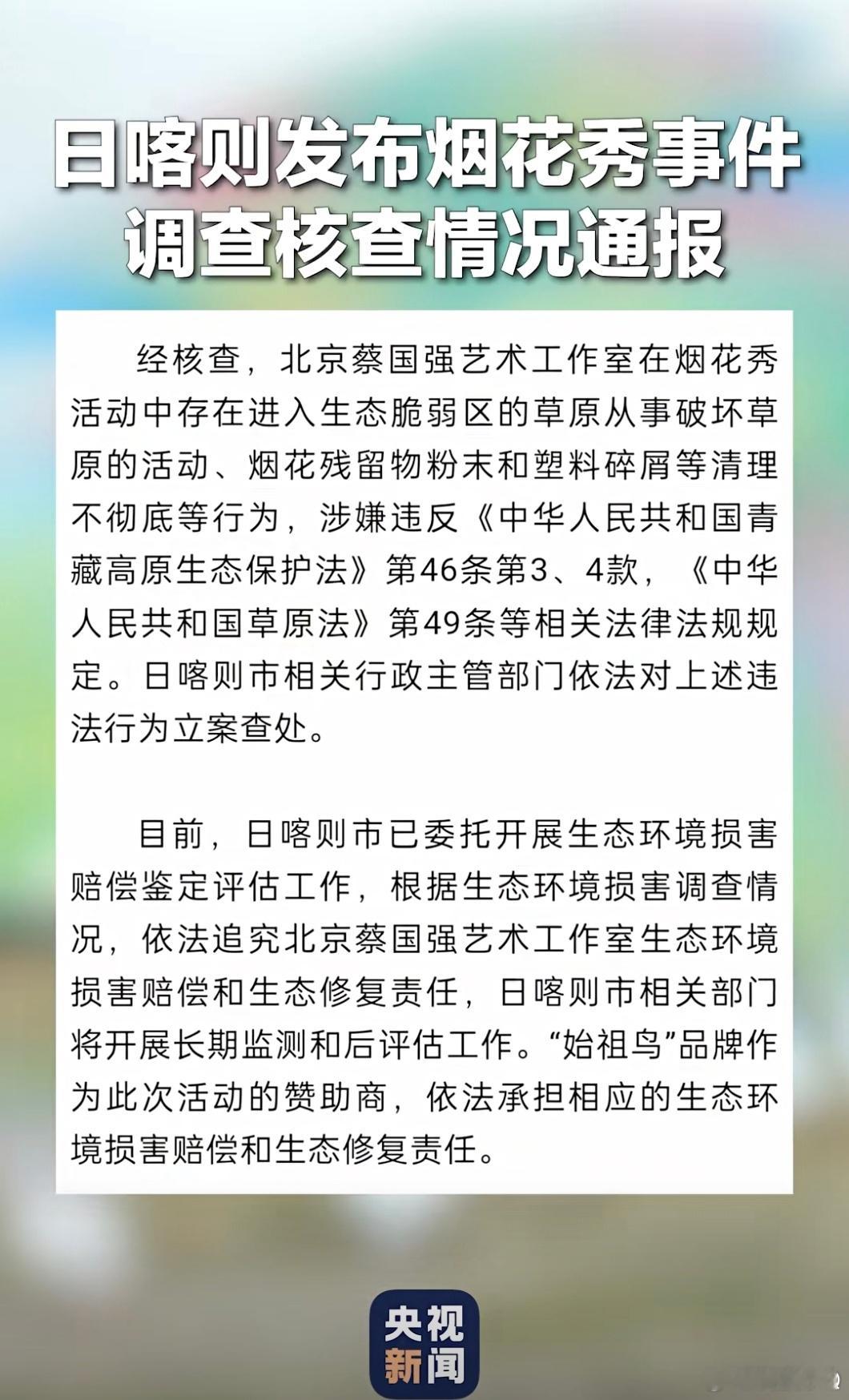 蔡国强烟花秀调查情况结果出来啦,和大家预想的一样吧,破坏环境就该受到处罚!!!