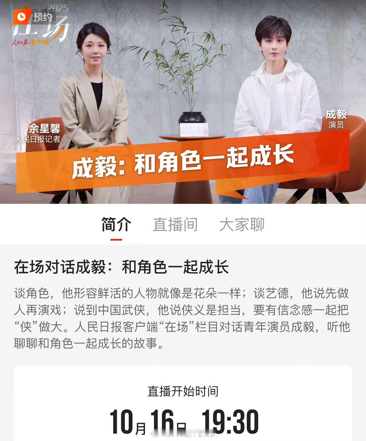成毅人民日报明天19:30有直播呀!我先期待啦![拜托]成毅人民日报对话