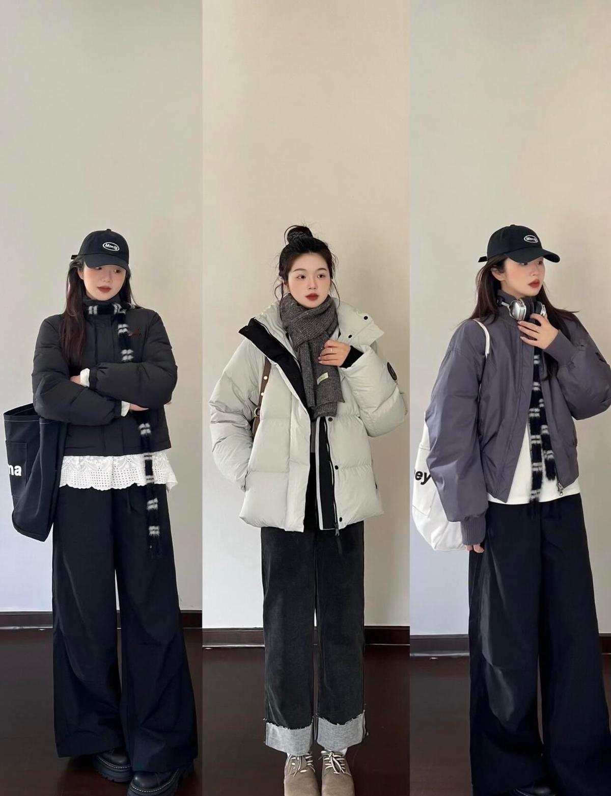 短款羽绒服一裹,阔腿裤一拖,腿瞬间长了五公分。 不是魔法,是首尔街拍算出来的公式