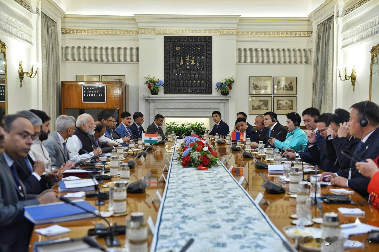 印度总理莫迪会见来访的蒙古国总统呼日勒苏赫。这是印度与蒙古两国交往的最新进展。莫迪继续在国际舞台上纵横捭阖,印度与蒙古走近也令人警惕。 在新德里,莫迪会见了蒙古客人。印度方面称,两人进行了深入会谈。印度和蒙古庆祝了建交70周年和战略伙伴关系建立10周年。 印度方面称,印度与蒙古同意继续合作,进一步扩大全球南方国家的声音。 印度与蒙古加强了佛教方面合作,并以此为纽带促进双边关系。印度的野心不止于此,印度还与蒙古讨论了能源、信息技术、关键矿产、稀土、农业等方面的合作。