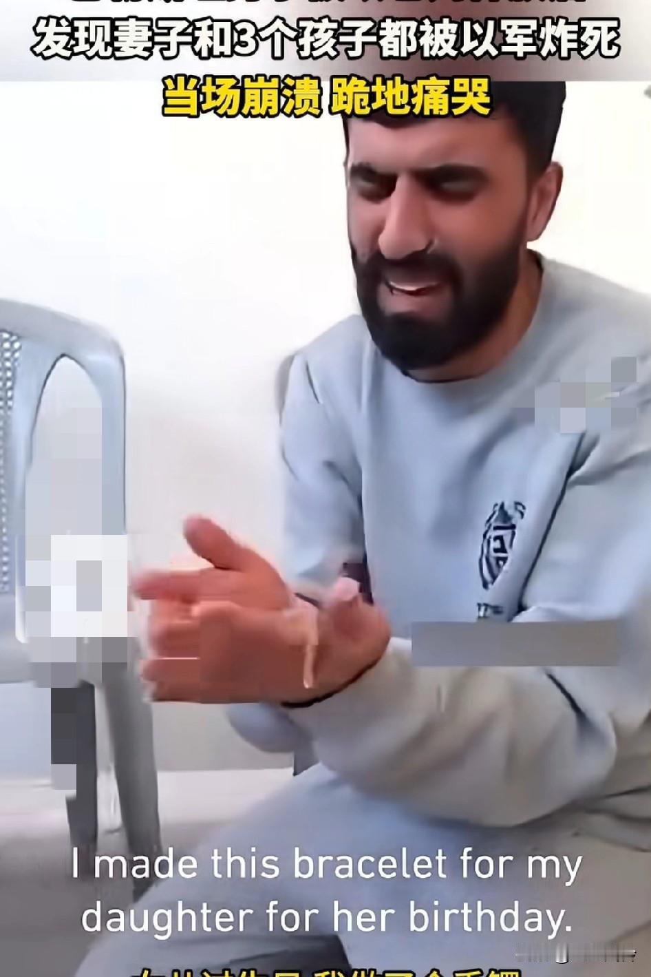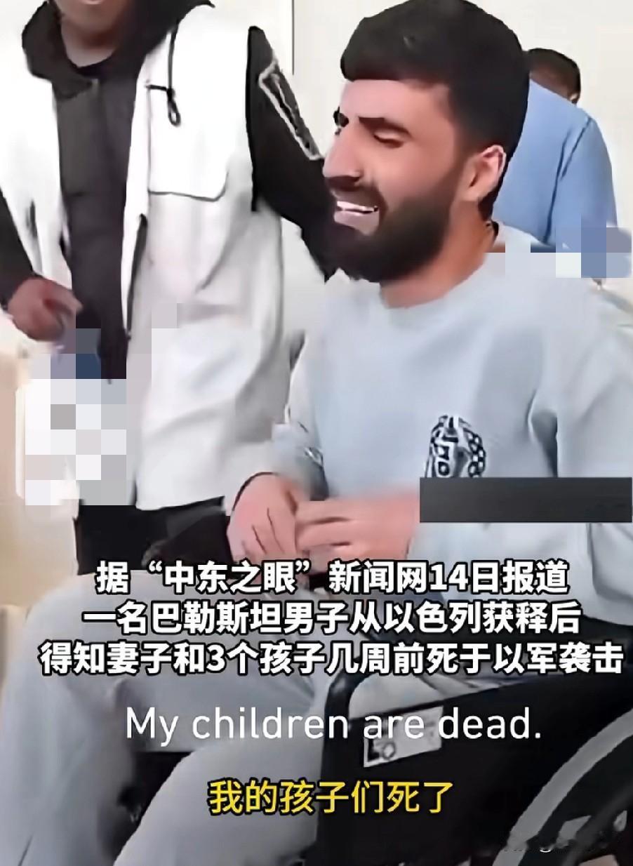 巴勒斯坦男子被以色列释放后回家发现妻子和三个孩子都在几周前被以军炸死,跪地痛哭!