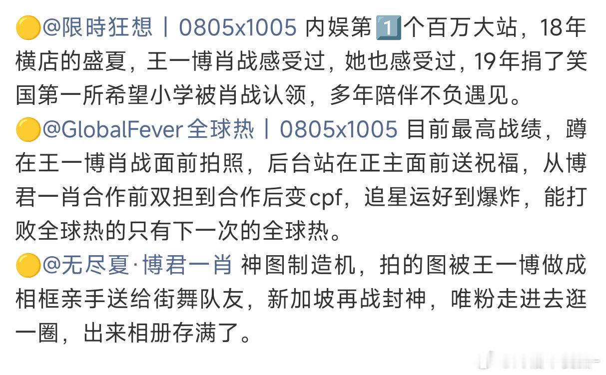内娱四位粉丝破百万的站姐限时狂想不仅是内娱第一个破百万的站子 更是内娱第一个带头捐希望小学的站子!且这三位都是内娱神一般的存在[努力][努力]