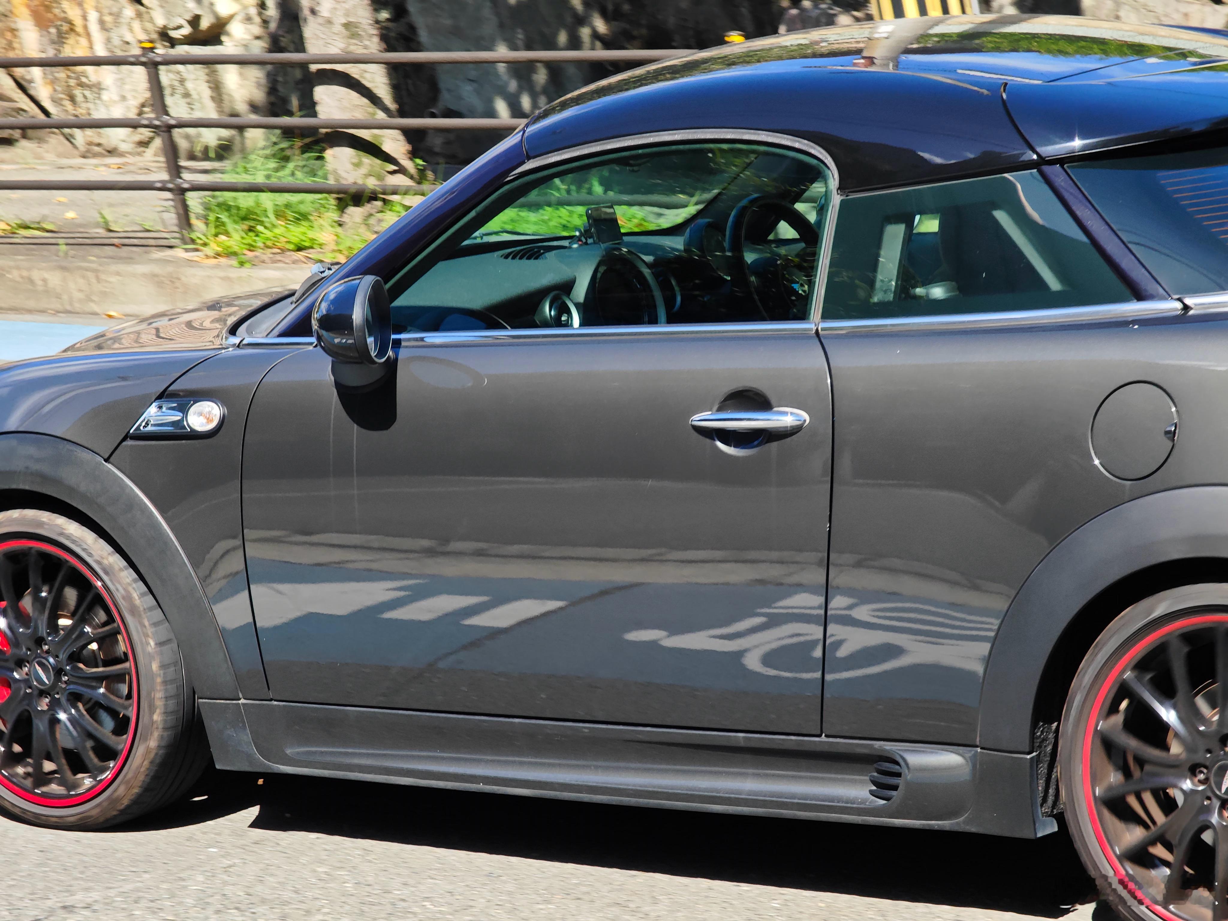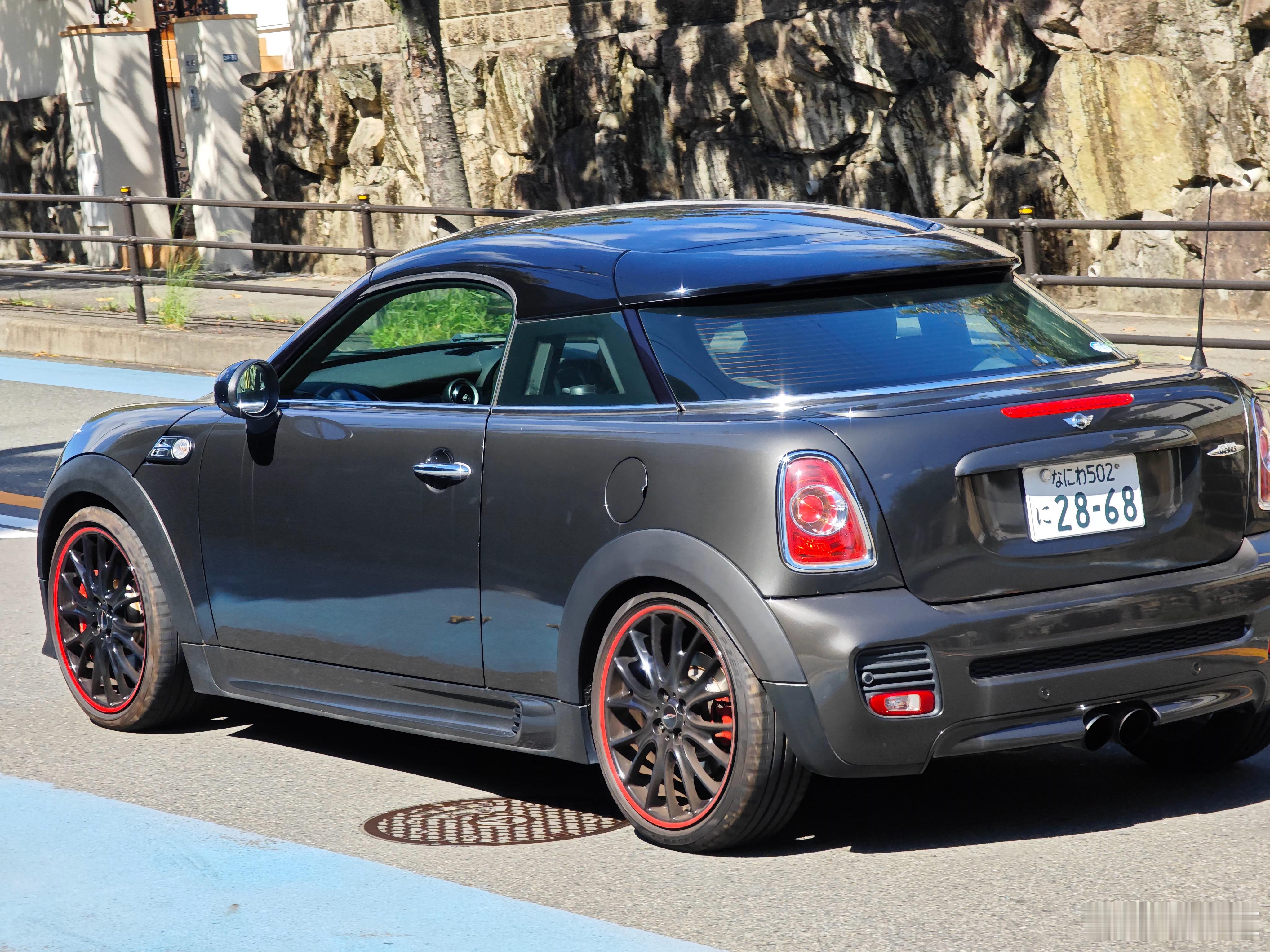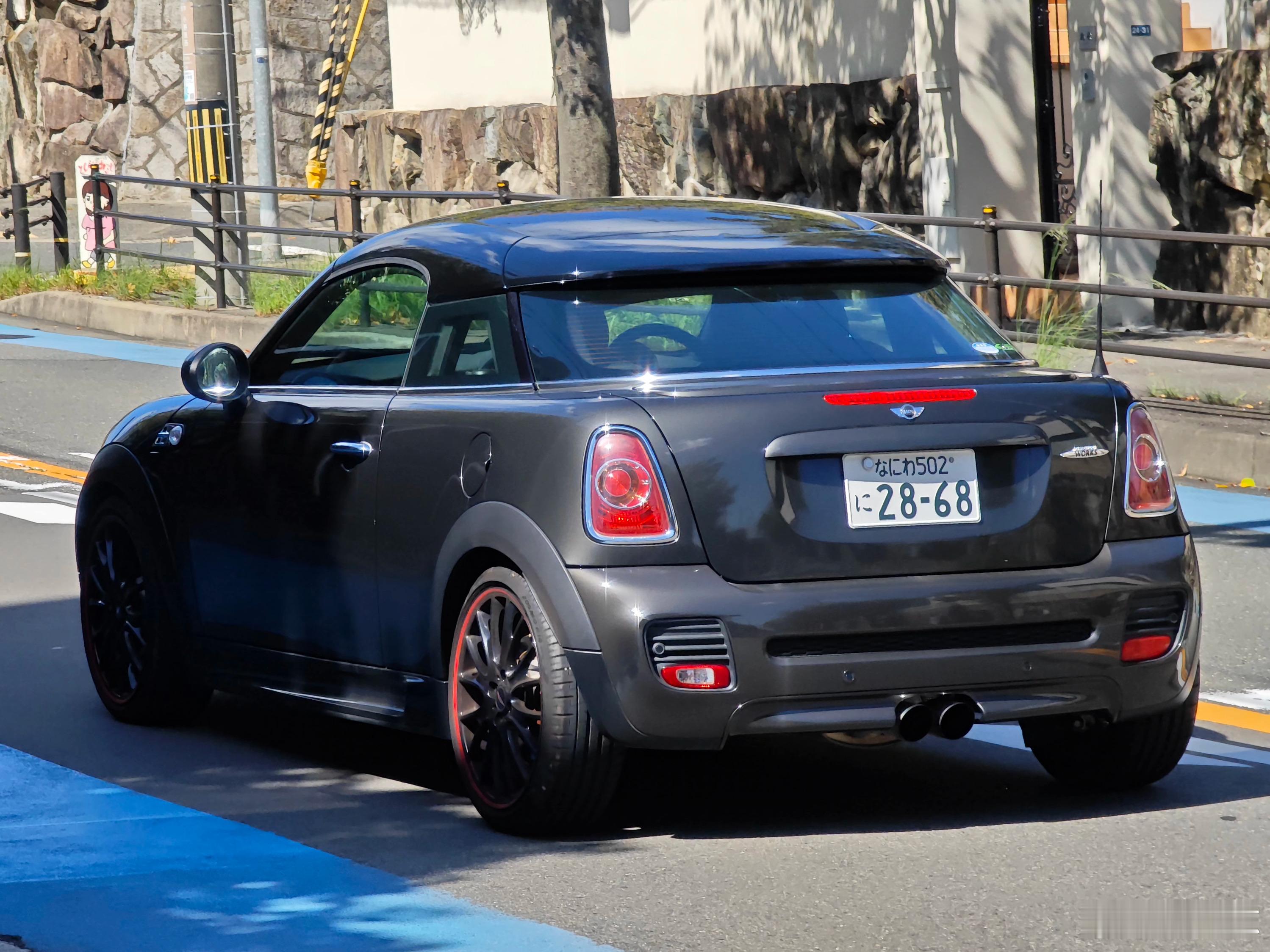 型车街拍[超话]偶遇R58 MINI Coupé JCW,属于R56平台的末期产物,也是MINI史上最非主流的驾驶机器。1.6T N18引擎、211匹,车重1.2吨出头,三门双座设定。当年不知道哪位人才给它起绰号叫“棒球帽”,形容它短尾、低顶、往前俯冲的姿态,简直太贴切了。