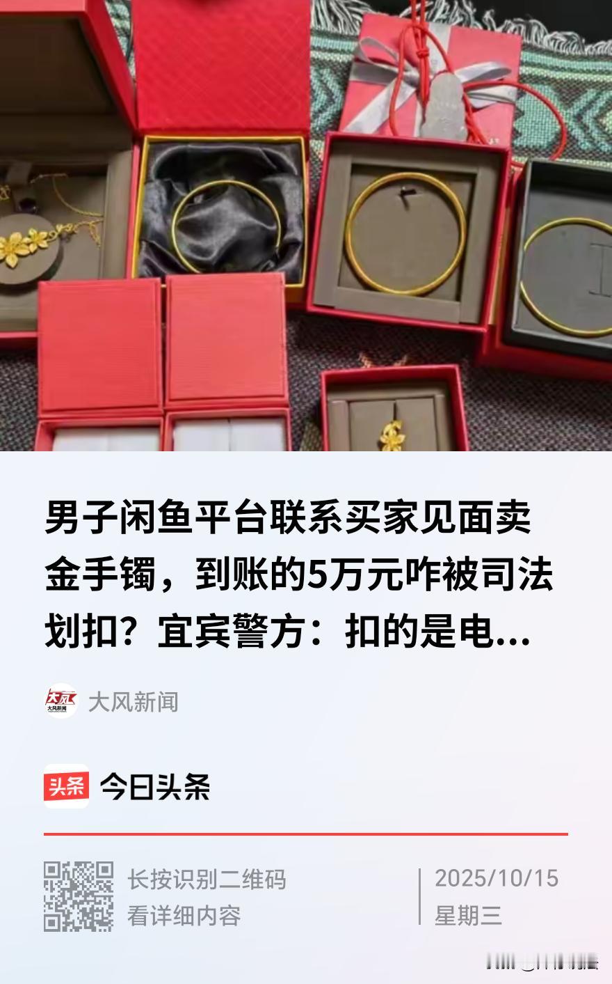 四川成都,一男子因家中急用钱,将妻子陪嫁的三个金手镯合计70克在闲鱼平台出售。有