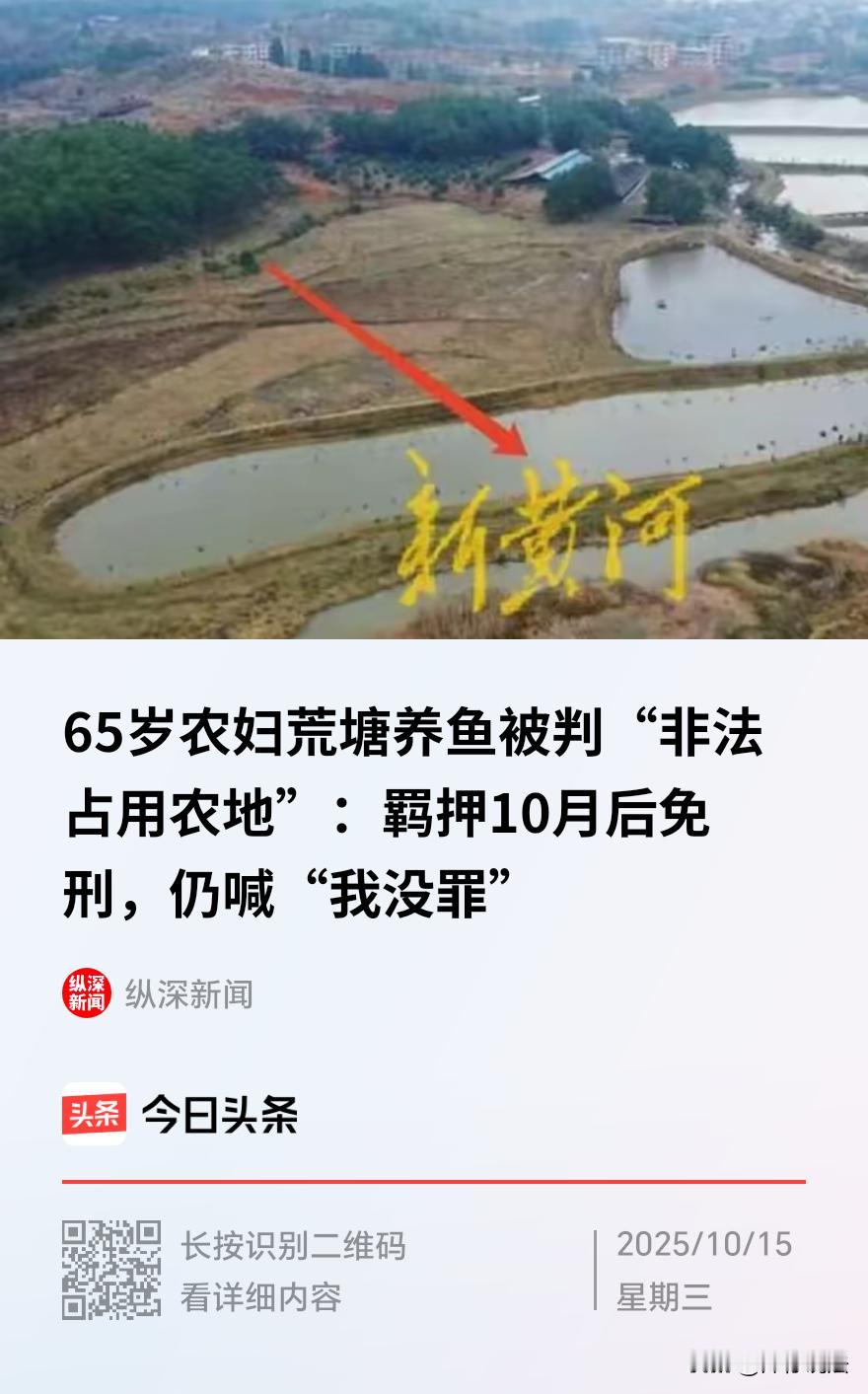 湖南永州,一65岁女子承包了一片11.98亩的土地,常年被水淹没,约30年无人耕种,女子把它当作荒塘拿来养鱼。后因一场暴雨,水位上升,女子担心鱼跑走,就雇人清淤、加高加固塘埂。不料,这一行为被警方认定为非法占用基本农田,女子遭带走调查。侦查结束后,检察院以非法占用农用地罪对女子提起公诉,一审法院判处女子有期徒刑1年。女子不服,提起上诉,二审法院认为女子情节轻微,免于刑事处罚,但保留了有罪认定。女子释放后,仍不服,继续申诉。令人意外的是,这块地已被调整为坑塘水面,而当地还把这规划为湿地开发。   据悉,张秀兰(化名)坐在自家门槛上,手里紧紧攥着一沓厚厚的材料,这些纸张记录着她这几年来的人生波折,从一名普通的农村养鱼人,变成了戴罪之身。   张秀兰心里嘀咕,带着困惑和委屈:“我就是把鱼塘清淤加固了一下,怎么就成了非法占用农地?”   这个疑问,困扰了她整整三年。   事情要从2020年说起。张秀兰承包的一个地块,承包了30年,这是某水库库区内一处特殊的土地,说它特殊,是因为这块地曾是分给了村民作为责任田。   但由于地势低洼,年年被水库水淹没,近三十年来几乎没人在这里种植庄稼,村民们靠着水库失地补助维持生计,这片地渐渐成了长满水草的荒塘。   张秀兰没有多想,将这块荒塘拿来养鱼,还拿出全部积蓄买了鱼苗,不幸的是,这一年下了一场大雨,发起了洪水。   这场洪水太厉害了,水位急速上升,而塘埂太低,鱼都快跑光了。   为了保住这个养鱼的家当,张秀兰和儿子商量后决定,雇人对鱼塘进行清淤,同时加高加固塘埂。   然而,这个看似寻常的农事活动,却引来了警方的关注。   2021年12月,警方以“非法占用农用地罪”对张秀兰立案侦查。   2024年1月,张秀兰被警方采取刑事拘留,理由是,其未批先占基本农田开挖鱼塘。   随后,检察院以非法占用农用地罪对张秀兰提起公诉。   庭审中,张秀兰拿出了多项证据进行反驳。   其一,一份由居委会出具的证明。上面大致写着这样的内容:涉案地块是“历史上水淹区,近三十年未种植谷物,基本在养鱼”。   其二,一份2019年第三次全国土地调查的数据。这份调查数据显示,该地块的土地性质是“坑塘水面”,而不是“水田”。   其三,张秀兰签署的承包协议。协议上白纸黑字写着,她承包的是“170水位线内荒塘”,用途明确为水产养殖。   2024年7月,一审法院作出一审判决,认为土地利用现状应该以2018年的数据为准,当时这块地显示为“水田”,遂认定张秀兰的行为构成非法占用农用地罪,判处有期徒刑一年,并处罚金四万元。   这个结果让张秀兰方无法接受,提起了上诉。   2024年11月,二审法院作出二审判决,采纳了张秀兰提交的2019年数据,定性该地块为“坑塘水面”,但仅免于刑罚,仍保留罪名。   此时,张秀兰已被关了10个月,而因为被羁押,其身体大不如前,至今不敢出门见人。   在二审结束后他们发现,涉案地块已经被规划为湿地项目开发范围。   目前,张秀兰已向省高院提交了申诉材料。   那么,从法律角度,对于张秀兰的遭遇该如何评价呢?   1、涉案的11.98亩土地在法律上究竟是“基本农田(水田)”还是“坑塘水面”?   根据《土地管理法》的相关规定以及司法实践,土地性质的认定,应以有权机关依法核准的最新调查数据和规划为准。   本案中,虽然涉案地块在2018年度的土地调查数据中显示为“水田”,但张秀兰提供了2019年“三调”成果,显示为“坑塘水面”,同时提供了村委会证明等证据,证实该地块因常年被水淹没,近三十年未耕种农作物,已实际作为鱼塘使用多年。   可见,在张秀兰2020年实施清淤加固行为时,涉案地块的法律性质应认定为“坑塘水面”,这和二审法院的认定相符。   2、张秀兰的行为到底是否构成非法占用农用地罪?   《刑法》第三百四十二条规定,违反土地管理法规,非法占用耕地、林地等农用地,改变被占用土地用途,数量较大,造成耕地、林地等农用地大量毁坏的,处五年以下有期徒刑或者拘役,并处或者单处罚金。   具体到本案,涉案土地在行为发生前已是“坑塘水面”,其用途即包含水产养殖。张秀兰承包该荒塘的目的即为养鱼,其“清淤加固”行为与在耕地上“开挖”新的鱼塘,确有本质区别。   张秀兰与村委会签有承包协议,其对涉案土地的使用具有合同依据,其行为目的是防止鱼类流失,保障合法经营,主观上不具备非法占用农用地的故意。   客观上,清淤加固是对现有生产设施的维护,是否算破坏,存在疑问。   此外,刑法应当具有谦抑性,在可以采用民事法律达到惩治效果时,不应由刑法介入。   从有利于被告人原则,张秀兰的行为符合情节特别轻微,不认为是犯罪亦无不可。   接下来,张秀兰申诉一旦被省高院受理,仍有获得改判机会。   对此,您怎么看?