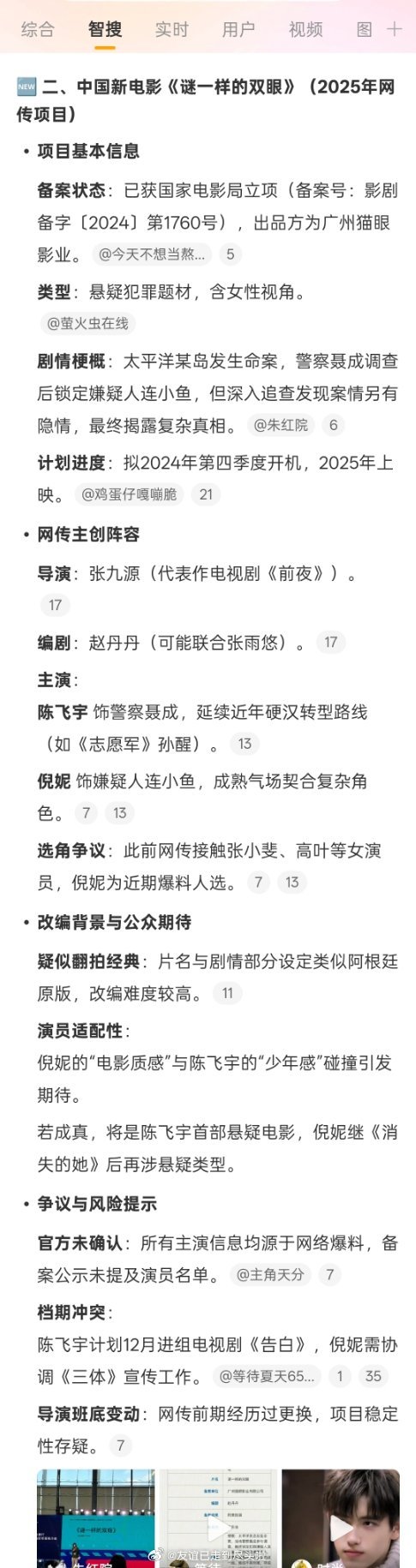 🍉悬疑电影《谜一样的双眼》倪妮陈飞宇,即将开机