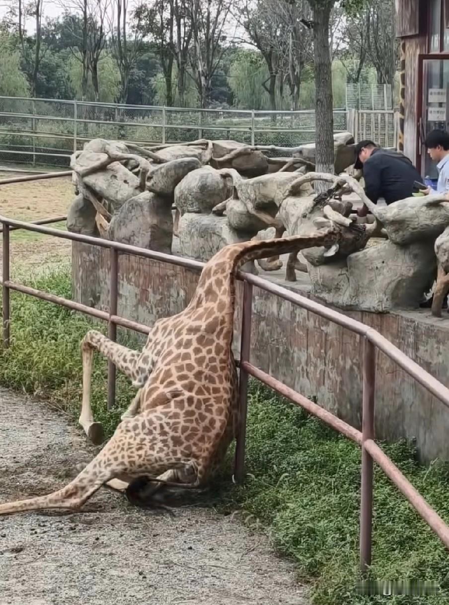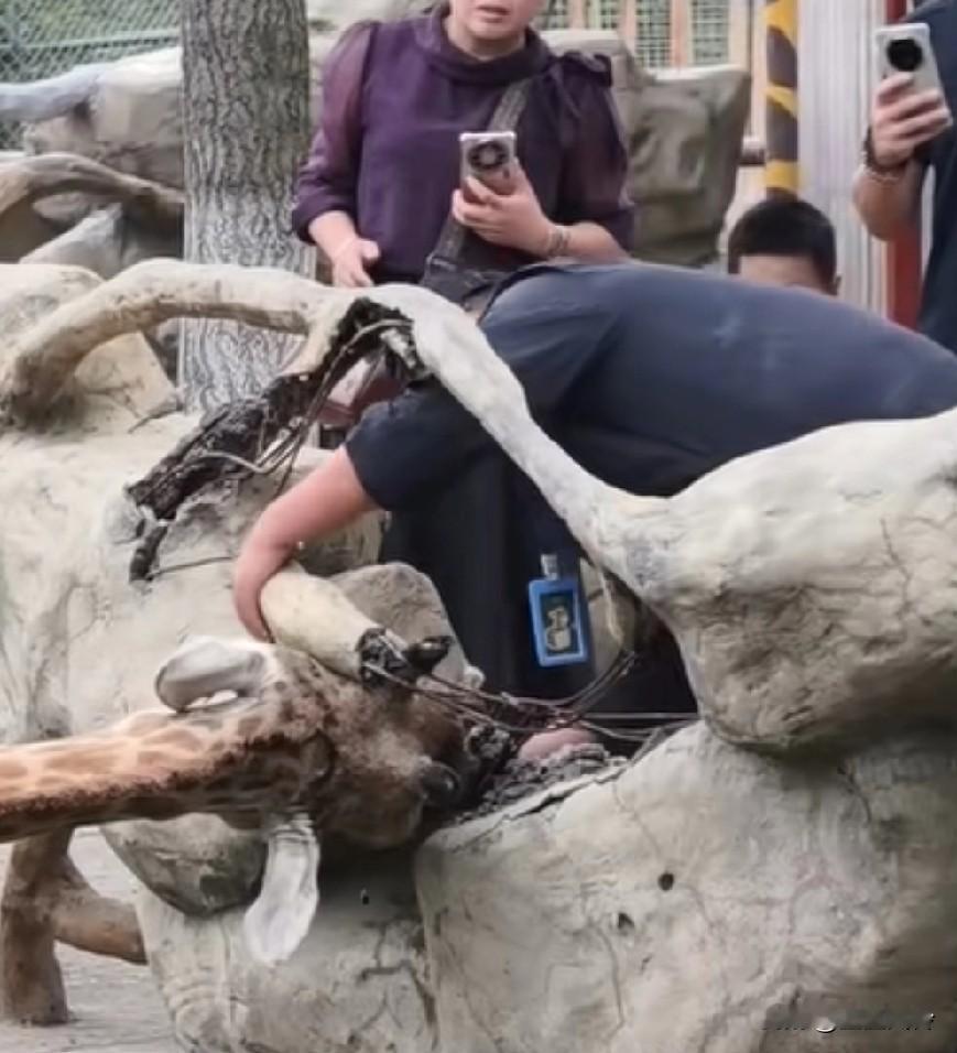 我去,这二师兄弟人才,这是给长颈鹿的二次伤害呀,是被活活锤死的吧,这救援手段… 工作人员是个人才,一看就是从小没干过粗活的,拿锤子往下砸,没有手磨机吗?没死也被砸死了,这样越砸越紧了,砸着都压下去了,什么工作人员做事这效率。真是个半吊子,拿个长钳,把那跟钢筋剪断不就可以了。为什么不找消防员,妥妥的把长颈鹿砸成重伤,可怜的鹿鹿 长颈鹿:我看你不是来救我的,你是来杀我的