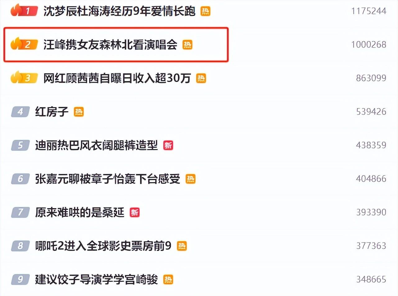 放到现在才轮到汪峰上一次热搜,也着实不容易了,往常热搜还没来得及刷新就被娱乐圈的大瓜给压下去了,这回是真真实实地带着新欢森林北一起走完了整个热搜,应该让他好好感受下这种久违的感尣目效果