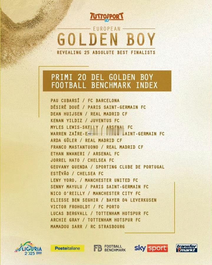 2025年金童奖25人候选: