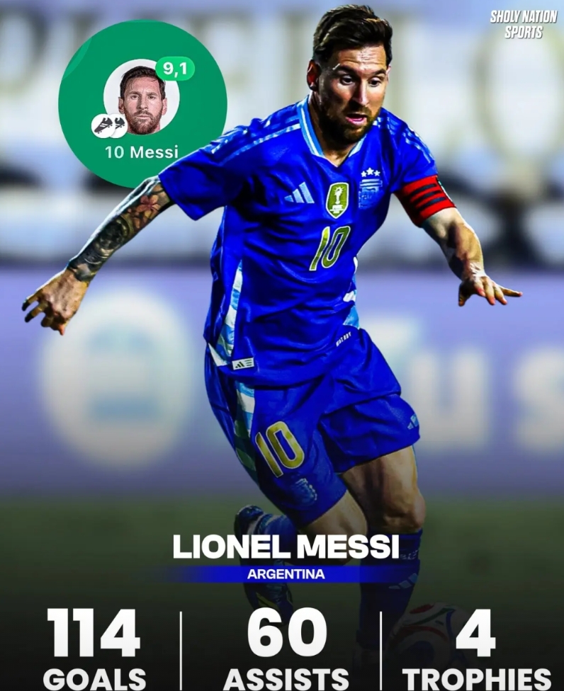 梅西在阿根廷国家队可以说相当完美了,为阿根廷出战了195场比赛打进114球送出60 次助攻,拿到了1座世界杯冠军+2座美洲杯冠军+1座欧美杯冠军+1座世青赛冠军+1座奥运会冠军,可以说国家队的冠军拿到了大满贯。