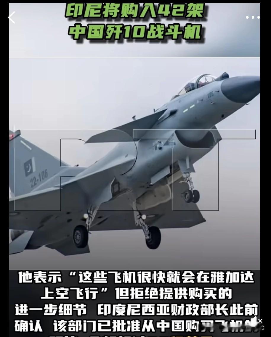 当地时间10月15日,据美联社报道,印度尼西亚将购买至少42架中国制造的歼-10C战斗机,这标志着该国首次购买非西方国家的飞机。 印度尼西亚国防部长表示,作为军事现代化计划的一部分,印度尼西亚将很快从中国购买战斗机。他表示,“这些飞机很快就会在雅加达上空飞行”。 他透露,“我们已经与中国进行了谈判,他们提供了许多选项,不仅有歼10,还有舰艇、武器和护卫舰。” 印尼国防部副部长道凡托指出,中国歼-10战斗机在印巴冲突中的表现是印尼考虑该机型的重要因素之一。此外,相较于西方同类战机,歼-10的价格更具竞争力,且技术配置符合印尼对“高性价比先进装备”的需求。 印度尼西亚财政部长此前确认,该部门已批准从中国购买飞机的预算,金额超过90亿美元。 一场实战,让中国的歼10名声大噪,印尼作为地区大国带了一个好头,其外溢效应不可低估。今后的歼10必将是一个走向世界当家机型。