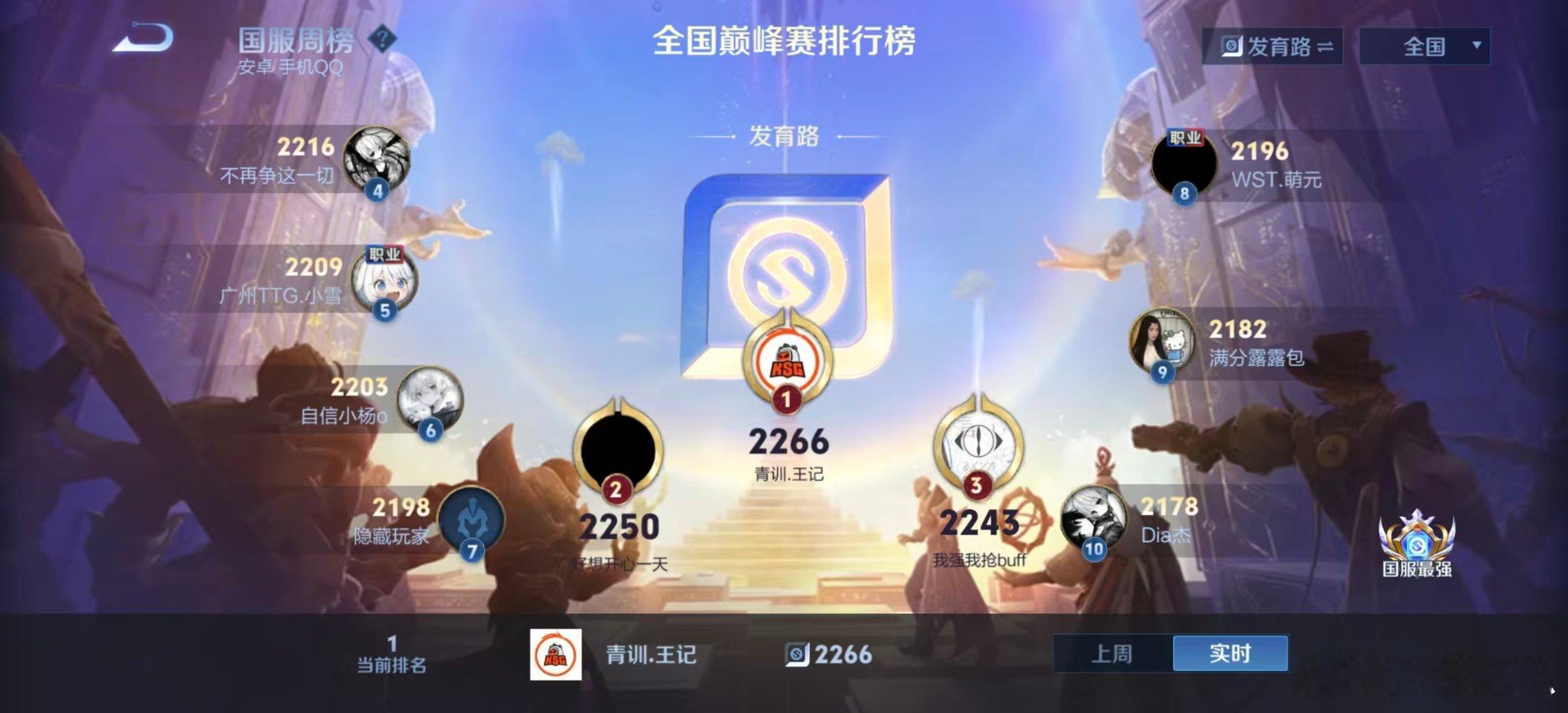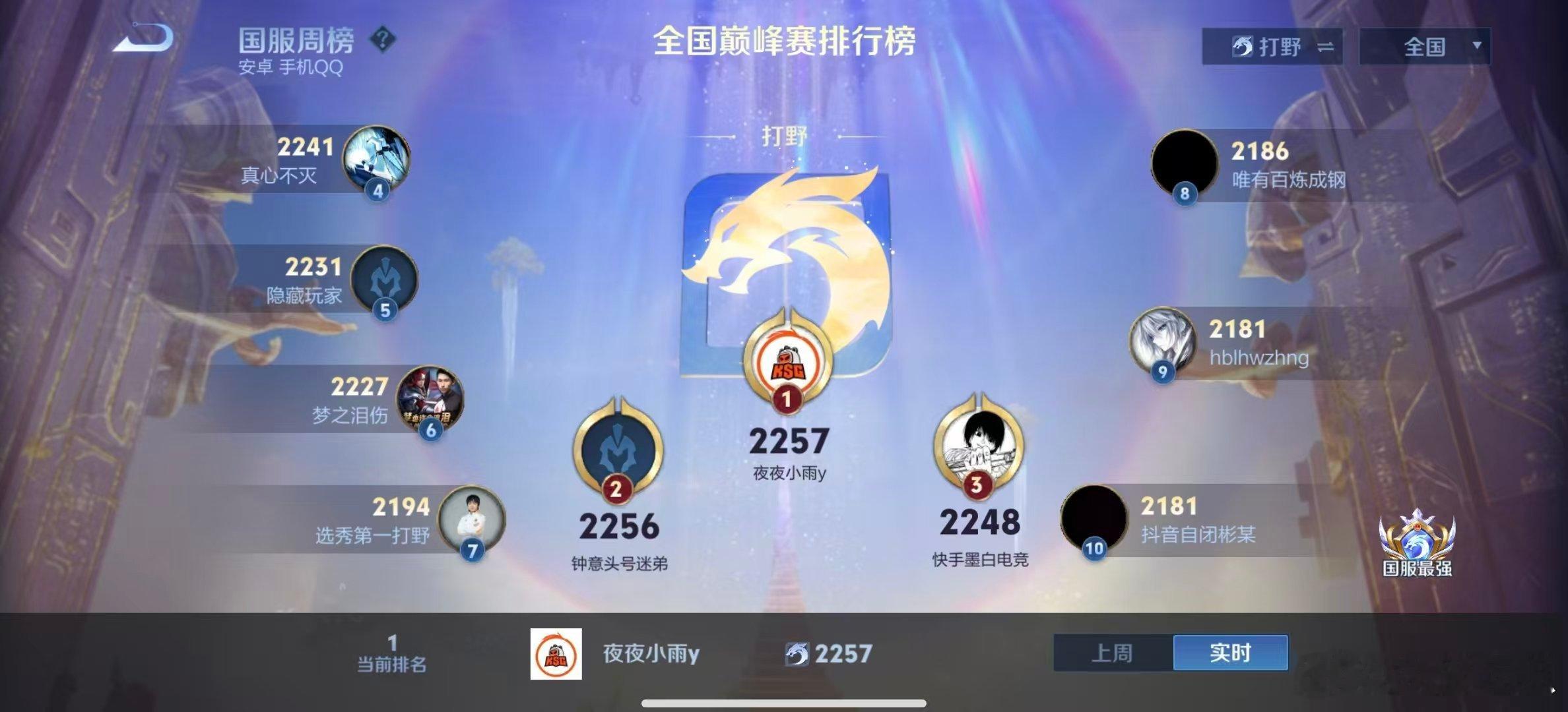 瓜友速报KSG青训打野夜雨射手王记同时登上巅峰第一​​​