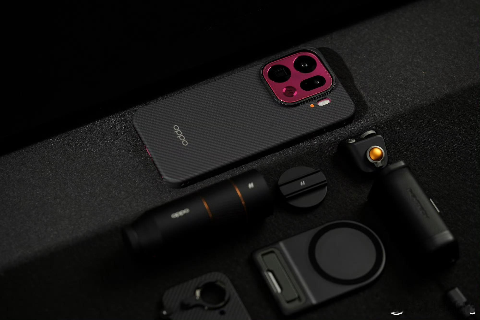 这次OPPO Find X9哈苏专业影像套装这套组合可以说是给足你“专业仪式感”。轻薄纤维壳手感细腻,搭配带哈苏 H 标的长焦增距镜、脚架环与专业肩带,整套设计复刻相机质感,手持时的贴合度更是让人惊喜。