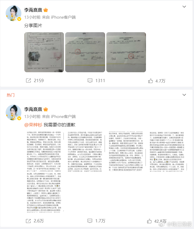 【19岁男演员荣梓杉被曝恋爱期间出轨打人,女方称自己一度确诊中度焦虑和抑郁,男方暂未回应】#荣梓杉 李禹熹##李禹熹称荣梓杉出轨打人# 昨晚,演员李禹熹发文喊话19岁男演员荣梓杉:我需要你的道歉。李禹熹曝荣梓杉恋爱期间出轨打人,她一度确诊中度焦虑和抑郁。目前荣梓杉及其工作室暂未回应。