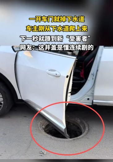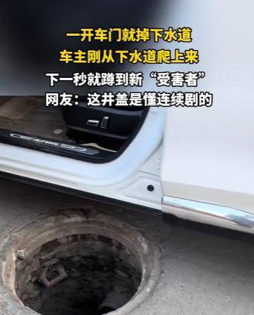 “太尴尬了!”10月14日,内蒙古,一车主一开车门就掉进了没井盖的下水道,费劲九牛二虎之力刚从下水道爬上来,下一秒就出现了新的受害者,网友:这井盖是懂连续剧的! 路面上的下水井盖十分重要,如果被偷或者被损毁后没能及时修补,很有可能就有人不慎掉进去摔伤。 一名车主路边停车时,没注意到驾驶座旁的路面上有个没有井盖的下水道,他刚打开车门准备下车,不偏不倚一脚踩空,直接摔进了下水道里。 这一下子把车主都摔懵了,自己这是穿越到哪里了?缓了一会儿后,车主终于是反应了过来,他开始顺着下水道旁的检修梯子往上爬,费了九牛二虎之力终于是爬上地面。 没想到,车主刚把车往前开了开,后面紧接着就出现了新的“受害者”,后车司机显然也没想到这里会有一个没井盖的下水道,车辆一侧的车轮死死卡在了下水道口,不管怎么开都动弹不得,司机赶忙下车查看。 不少网友直呼,这井盖是懂连续剧的,在车主之前这儿不知道祸害了多少人,这要是一个不注意踩空,就算不受伤也得吓个半死,相关部门还是要趁早修补! 信息来源:《一开车门就掉下水道,车主刚从下水道爬上来,下秒就蹲到新受害者》观象视频