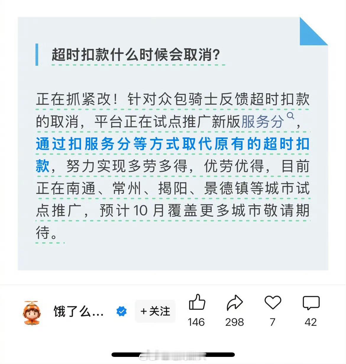 外卖平台试点取消骑手超时罚款 京东、饿了么、美团都宣布了,试点取消骑手超时罚款,外卖骑手再也不慌了[并不简单]