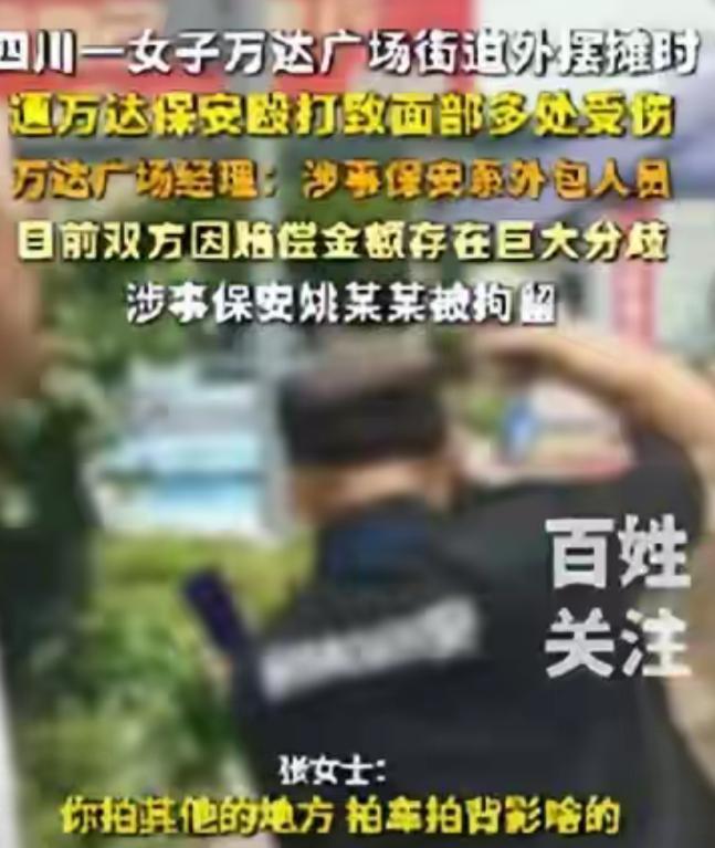 又是外包?四川攀枝花,一女子在万达广场街道外摆摊,突然遭到门口保安殴打,面部多处受伤,双方协商赔偿金未果,万达广场经理称涉事保安系外包人员。 事情发生在9月6日这天,张女士吃完早饭来到了万达广场附近摆摊,之所以选择这里是因为附近客流量大。 她此前也曾在附近摆过,没有遇到阻碍。 不料,这次没摆多久,万达广场的一名保安就走了过来,直接大声嚷嚷着让张女士离开,还说这里不是摆摊的地方。 张女士据理力争,在她看来自己没去万达广场门口摆,这里的街道并不归万达所有,即便要管也该由城管负责,保安没有权力处理此事。 谁知,这保安直接就动手殴打张女士,张女士不是对手,面部多处受伤。 张女士拼命呼救,保安却毫不在意,最终还是附近行人劝架,才拉开了二人,张女士当即报警,警方将保安带回了派出所。 张女士到了医院检查,发现鼻骨颌骨骨折、牙齿断裂,医生诊断张女士还因此患有中度焦虑抑郁症,需要长期服药治疗。 事后,张女士要求万达严惩这名保安,并且要求保安赔偿治病一应开销及精神损失费,保安却还是坚持自己是职责所在,即便是赔偿也不该赔偿这么多。 双方就赔偿金一事一直未能达成一致,目前,当地警方已将涉事保安姚某某拘留,案件正在进一步侦办当中。 事发后,有记者采访了万达广场经理,结果经理却说这件事和万达没有关系,因为姚某某是外包人员,即便有责任也该找外包公司处理。 只是,张女士却坚持认为是万达广场纵容所致,要求万达也进行赔偿,目前万达方面正在准备通过法律程序解决。 这件事也在网上引发热议,不少人支持张女士继续索赔,认为这保安打人的举动无论怎么讲都是故意伤害,应该予以严惩。 经过这件事后,姚某某怕是要被开除了,还可能承担一笔不小的赔偿金,只能说他将为自己的冲动付出代价。 对此,大家又是怎么看的呢?