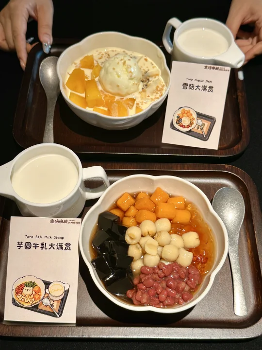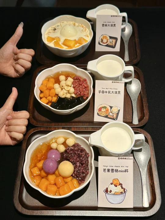 还有好多漂亮小甜品,都是现点现做的!!芋圆牛乳大满贯、雪酪大满贯…满满都是料,份量都多到吃不完!!边吃烤肉变吃甜品也太幸福了吧!