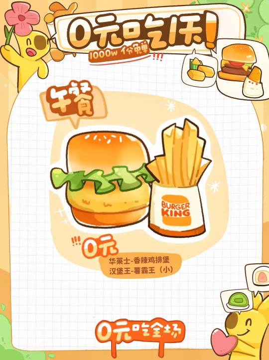 中餐主打一个“超满足”!华莱士香辣鸡排堡直接送,大口吃肉超过瘾!还有汉堡王的薯霸王(小) 吃汉堡就要配薯条��!