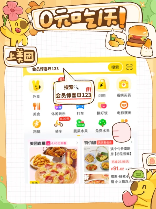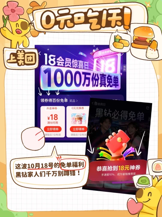 0️⃣元吃一天!美团18会员惊喜日杀疯了