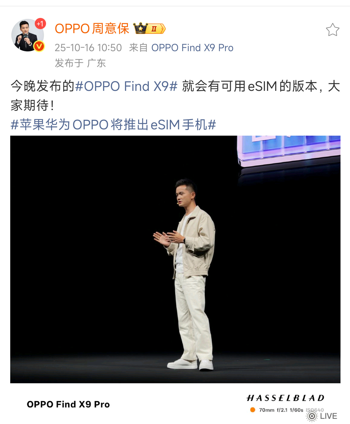 OPPO Find X9Pro,16GB+1TB+卫星通信版+eSIM版。国内eSIM版不减配。[污][污]