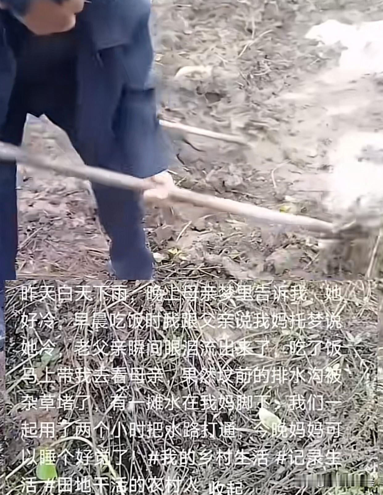 “这太神奇了!”安徽六安一男子晚上梦见妈妈对他说“脚冷”。醒来后他放不下心,第二天一早就和爸爸去坟地看了看。结果发现,因为前阵子下雨多,坟前的排水沟被枯树叶堵住了,妈妈的坟脚那里积了一滩水。 说实话,好多网友说这是“母子连心”,确实挺神奇的。但我觉得更打动我的,是这儿子把梦当回事的行动,他心里“咯噔”一下,就真的跑去看了,还和爸爸一起清理了两个小时,直到水通了,才轻轻对妈妈说:“水通了,您安心睡吧。” 说白了,这背后是一种“爱的条件反射”,真正可贵的不是感应有多玄,而是我们愿不愿意为心里那一瞬间的不安做点什么。哪怕只是通个水沟,这种把牵挂变成行动的心意,才是孝顺最实在的样子。 爱的确是需要双向奔赴的,就算隔着两个世界,也得有人愿意弯腰,去接住那份看不见的牵挂。 说到底,这世上所有的心灵奇迹,都是因为还有人愿意认真对待那些没说出口的需要。如果每次心里的“咯噔”都能换来一次实实在在的回应,这世上该少掉多少遗憾啊。