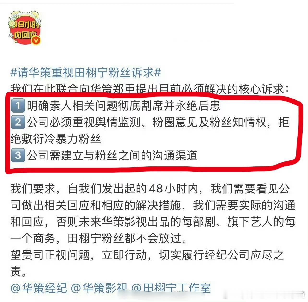 田栩宁粉丝给华策48小时让其赶紧回复粉丝诉求
