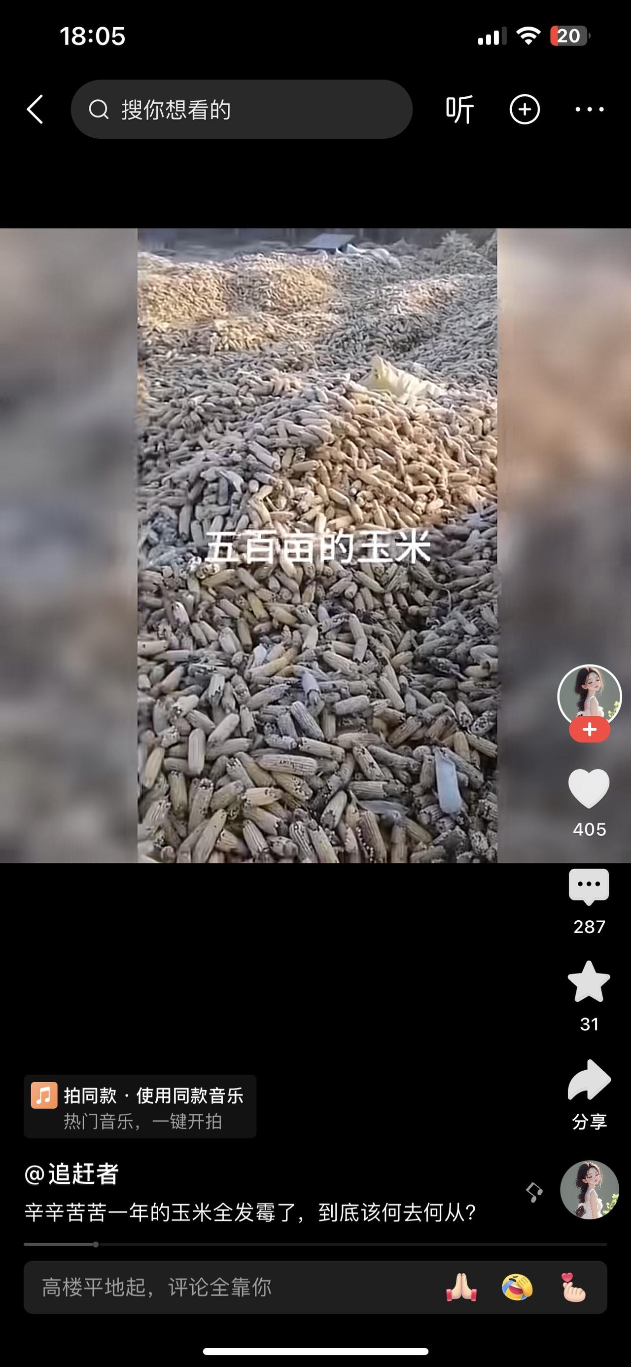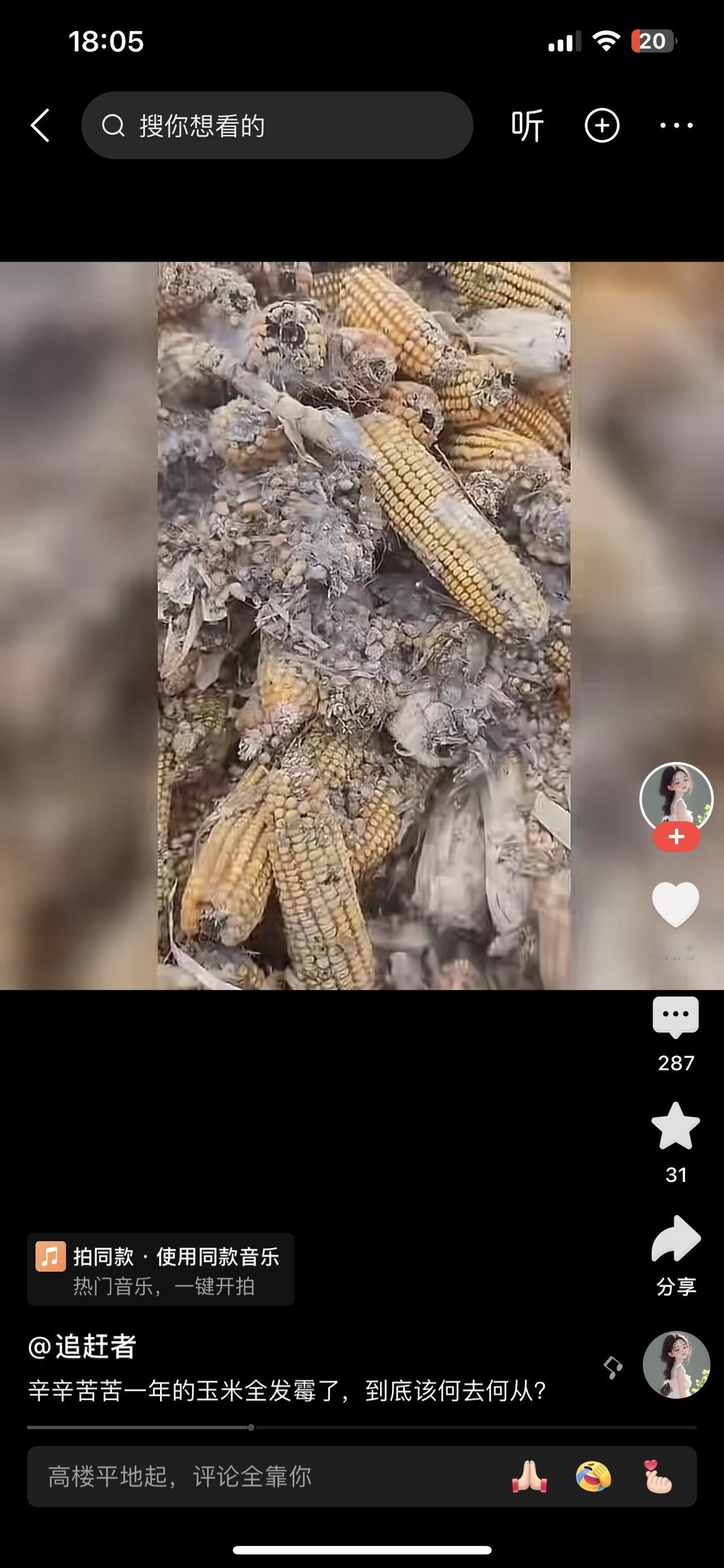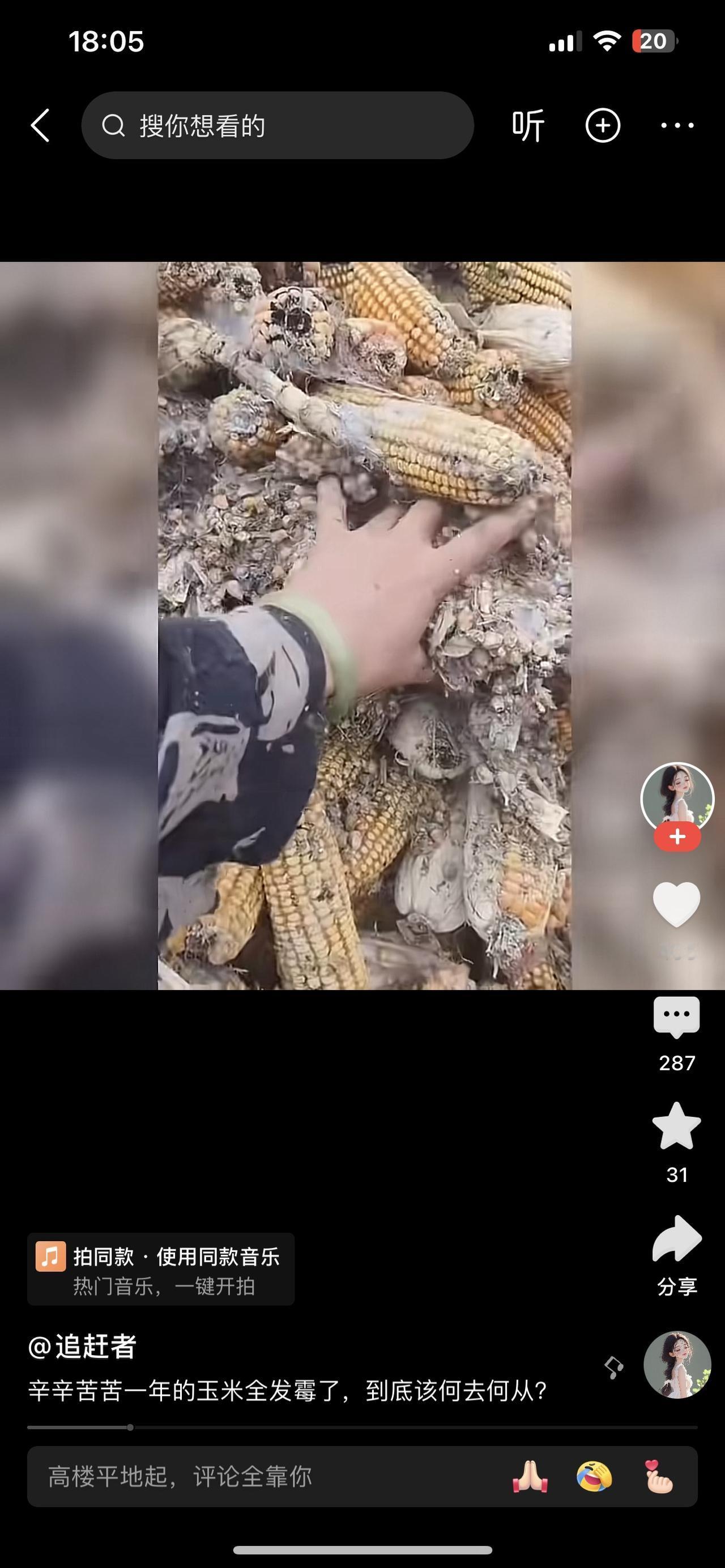 辛辛苦苦一年的玉米全发霉了,到底该何去何从? 李叔蹲在玉米囤前,手里攥着把发黑的玉米粒,指缝里沾着霉点。今年雨水多,没来得及烘干的玉米堆在仓里,没几天就长了霉。 邻居王婶路过,看见这光景叹了口气:“要不挑挑还能喂猪?总比全扔了强。”李叔摇摇头,“发霉的玉米有毒,猪吃了会生病,不能害了牲口。” 有人说可以低价卖给小作坊,李叔听了直摆手。“就算能换俩钱,万一做成饲料或食品,坑了别人,我良心不安。”他蹲在那,眉头皱成了疙瘩。 后来农技站的人来了,说发霉玉米得集中销毁,还教他明年怎么通风防潮。李叔咬咬牙,雇人把玉米拉去处理了,虽然心疼,却没犹豫。 旁人说他傻,放着钱不赚。李叔却说:“钱没了能再挣,要是丢了良心,这辈子都安不了心。”看着空了的玉米囤,他转身去翻明年的种子,眼里还有劲。玉米霉坏