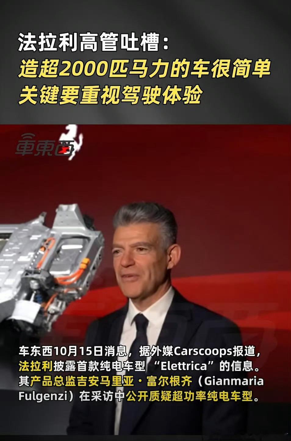 法拉利高管吐槽有点酸味儿啊,他说超2000匹马力的车很简单,关键要重视驾驶体验。