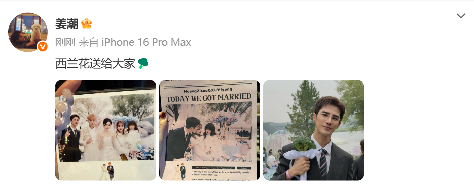 姜潮说要把他接到的黄子韬徐艺洋婚礼的西兰花送给大家[哈哈]