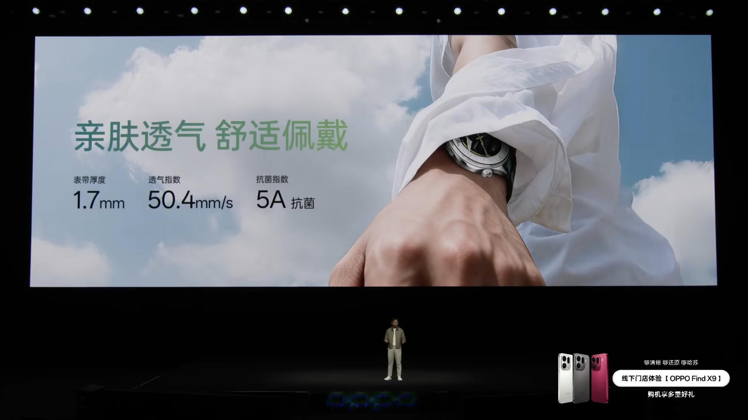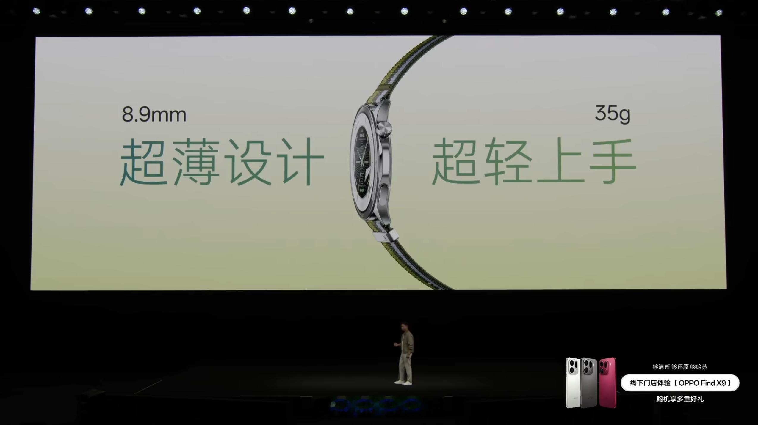 OPPO Watch S,OPPO 史上最轻薄的智能手表,厚 8.9mm,重 35g,表盘峰值亮度 3000nits。不过只运行 RTOS,没有全智能系统了。OPPO发布会
