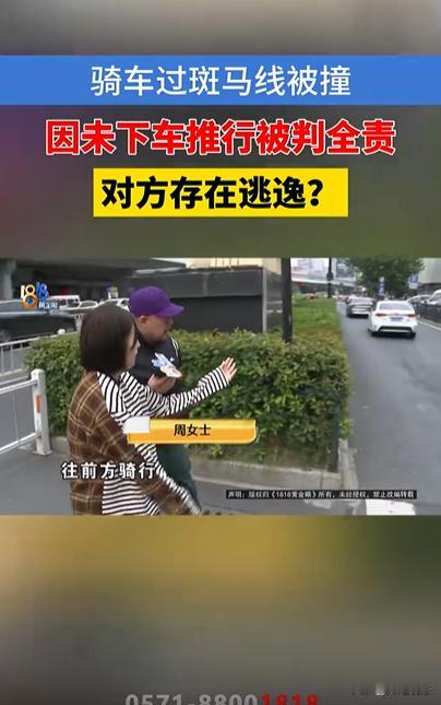 杭州,周女士在上城区中心服饰城上班。10日早上6点50分左右,她如往常一样骑电瓶车沿着青台立交桥的非机动车道自西向东行驶,在转弯进入立交桥东口一段南北走向的斑马线之后,突然被一辆沿着清江路自西向东行驶的黑色轿车撞倒了。 这段斑马线比较短,没有设置红绿灯,有不少人骑车从青泰立交桥下来之后,都借助这段南北走向的斑马线进入清江路,跟自西向东行驶的机动车处于同一条车道上。 据周女士回忆,当时她从另一头过来的时候,周边没什么人,而且想着自己也是骑在人行道上的,应该也不太会有车辆过来。可就在这么想着的时候,那辆轿车就把自己给撞倒了。 然后倒在地上的时候,她也在观察着那辆轿车。车停在了离自己大约100米的前方,大约逗留了有10分钟左右。但司机并未下车,只是把头伸出来对她进行了观望。 过了会儿,司机把车靠边停了下来,然后下车在不远处,静静地向她这边观望。见此情景,周女士也只能自己慢慢爬了起来,可就等她爬起来后,那个司机就立马驾车走了。所以在周女士眼里,那名司机是驾车撞人之后逃逸。 于是,周女士选择了报警处理。之后,赶到望江交警中队处理,拿到了第一份交通事故认定书,其中提到车辆左前侧受损,周女士右腿、左肩和头部受伤,根据各方当事人行为在事故中的作用及过错的严重程度,认定周女士在人行横道线上骑行负事故全部责任,轿车驾驶员徐先生没有责任。 看到如此认定,周女士当场就拒绝了签字,她认为基于未在人行道上下车推行而被撞就认定自己要负全责,徐先生却没有任何责任,这明显有失偏颇。 另外,她认为在斑马线上向前骑行,后方的车辆她肯定是看不到的。最关键的,对方撞了她,也并未对她进行第一时间救助,而选择逃离了现场。所以轿车司机徐先生,也应该负有一定责任。 于是在离开交警中队之后没多久,10点左右的时候,交警找到了她,并给了她一个电话号码,告知是肇事司机徐先生的。 双方沟通下来,徐先生坚称没有撞到周女士。这让周女士更加气愤,更认为徐先生不该一点责任不负。 所以周女士决定向上城区交警大队反映情况,之后收到了第二份交通事故认定书,这次认定他和轿车驾驶员徐先生负同等责任,理由是徐先生过人行横道线未减速观察,周女士未注意观察。 这次周女士依然拒绝不认可,她认为现在的情况是徐先生撞倒人之后,未实施任何救援便逃逸,且后面双方沟通时,仍然拒不承认撞倒她,所以从徐先生的态度中,她并未感受到任何歉意,所以她准备请律师介入,要求判定徐先生全责,并向她道歉。 另一边,徐先生认为,自己是一名网约车司机,当时他其实以为是没撞到人的,他在周女士不远处观察了一段时间,只是发现有一个人倒下了,以为那个人摔倒了,但跟他是没关系的。然后看了一会儿,见到周女士自己也爬起来了,所以就走了,去了交警队。 另外根据监控显示,他认为周女士是鬼探头,突然蹿出来的,如果是刮到他车了,或是大力撞击的话,他肯定是会有感觉的。 徐先生认为,交警队的第二次判定,他也认可的,但周女士不认可。所以他也没办法。 那么,当遇到类似事件时,应该如何维护自己权益呢? 根据《道路交通安全法》第七十六条规定:机动车发生交通事故造成人身伤亡、财产损失的,由保险公司在机动车第三者责任强制保险责任限额范围内予以赔偿;不足的部分,按照下列规定承担赔偿责任: 机动车之间发生交通事故的,由有过错的一方承担赔偿责任;双方都有过错的,按照各自过错的比例分担责任。 在此事件中,周女士争取复核,维护了自己的利益。 由于周女士认为徐先生态度不够诚恳,且未及时承认过错,相反一开始还不承认撞到她,所以周女士对于二次责任判定的同等责任依然不认可。 那么她就需要找到相应证据,进一步维护自己利益。