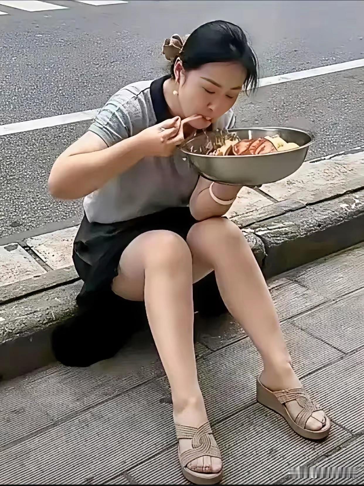 美女盛饭的是碗还是盆?一看就是强力劳动下的辛勤劳动者! 斗米充饥,肩挑千斤!