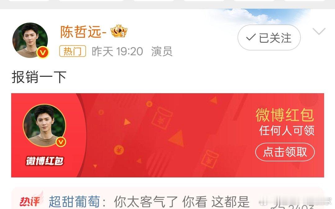 陈哲远下次发红包能不能提前告诉我一下我好准备准备。。​我嫉妒了哥哥​​​